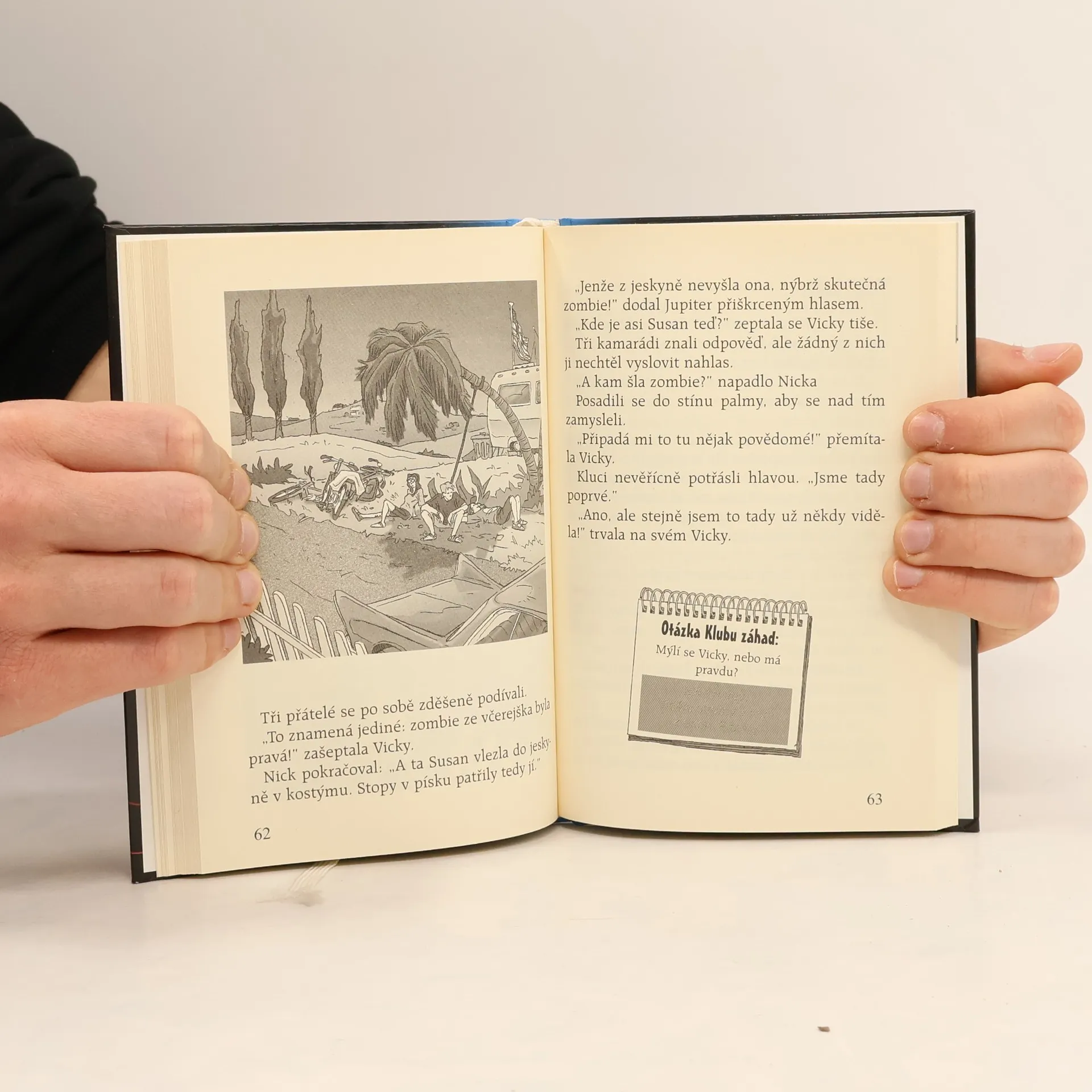 Staň se členem Klubu záhad! Pomocí superlupy objasni s ostatními členy záhadu zombie z jeskyně. Klub záhad je na stopě děsivé záhadě. Na pláži v San Angelo potkali skutečnou zombie, ale nikdo jim nevěří. I Jupiter, Nick a Vicky jsou zprvu přesvědčeni, že se jedná o nějaký žertík k vyděšení turistů. Skutečnost je však naprosto jiná! Zapoj se s Klubem záhad do pátrání! V Klubové příloze s dalšími informacemi o případu také zjistíš, jak jsi obstál ty sám.