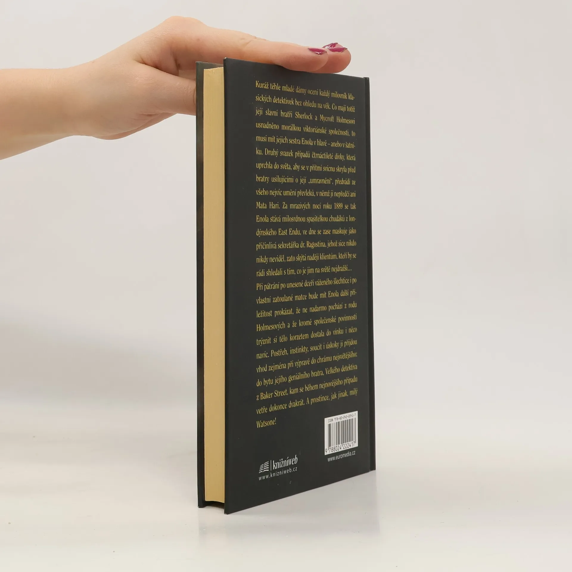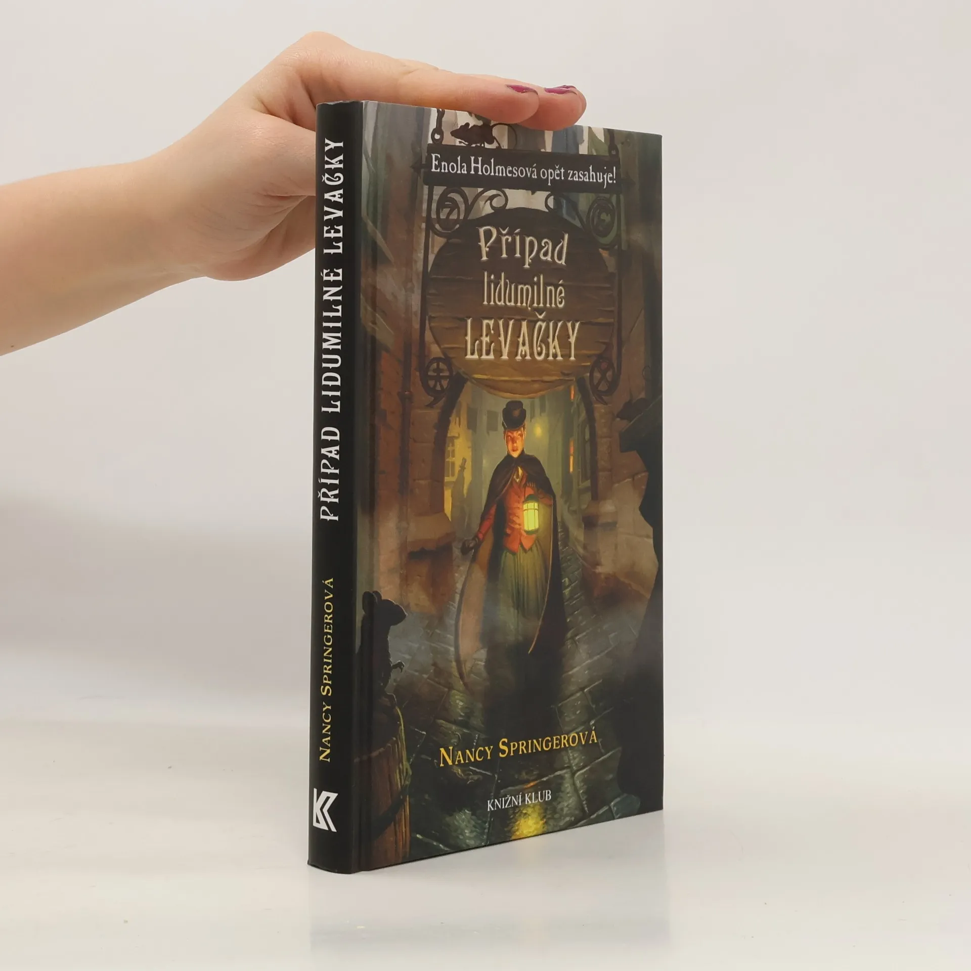 Enola, jejíž jméno čtené pozpátku znamená anglicky "sama", je skutečně sama v největším, nejtemnějším a nejšpinavějším městě světa. A pronásleduje ji nejslavnější detektiv světa - její vlastní bratr Sherlock Holmes. Potřebuje zůstat na svobodě, a tak se před ním musí skrývat. Ale ta věčná samota ji začíná tížit... Když náhodou objeví desky s nádhernými kresbami, připadá jí, že musí být s jejich autorkou duševně spřízněná, natolik ji oslovily. Dívka, která je vytvořila, však zmizela beze stopy. Enola se tedy odváží vyjít do půlnočních ulic, v nichž řádí vrahové, a pokouší se najít levorukou dámu, aby zachránila mladou malířku před všemocným padouchem. Záhy zjistí, že by toho mohla odhalit více, než je v jejím zájmu. Zradí ji její vlastní osamělé srdce? V druhém dílu Záhad pro Enolu Holmesovou, napínavé řady příběhů z ponuré a zrádné viktoriánské Anglie, představuje autorka, Nancy Springerová, jednu z nejbystřejších a nejodvážnějších hrdinek dětských knížek poslední doby.