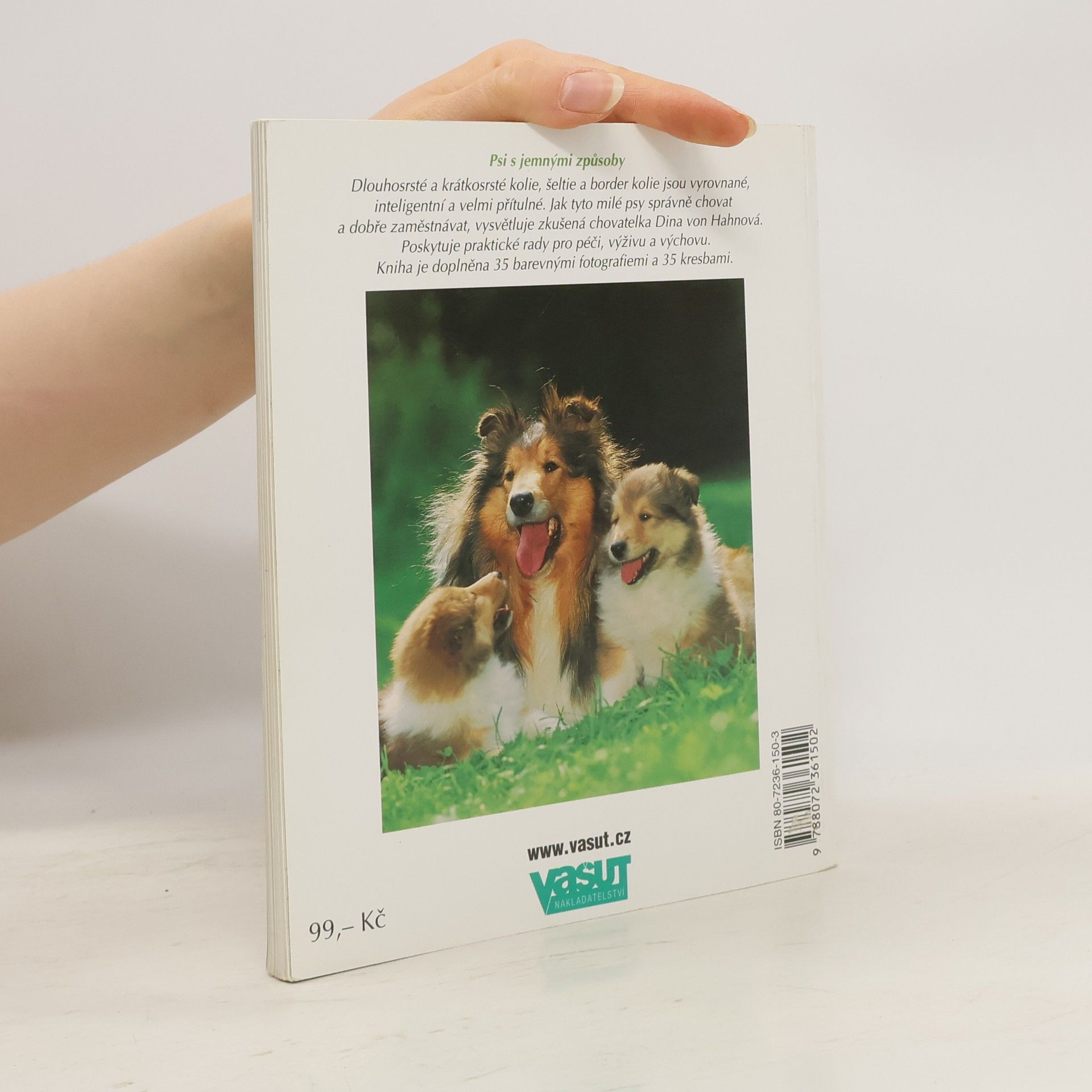 Dlouhosrsté a krátkosrsté kolie, šeltie a border kolie jsou vyrovnané, inteligentní a velmi přítulné. Jak tyto milé psy správně chovat a dobře zaměstnávat, vysvětluje zkušená chovatelka Dina von Hahnová. Poskytuje praktické rady pro péči, výživu a výchovu. Kniha je doplněna 35 barevnými fotografiemi a 35 kresbami.