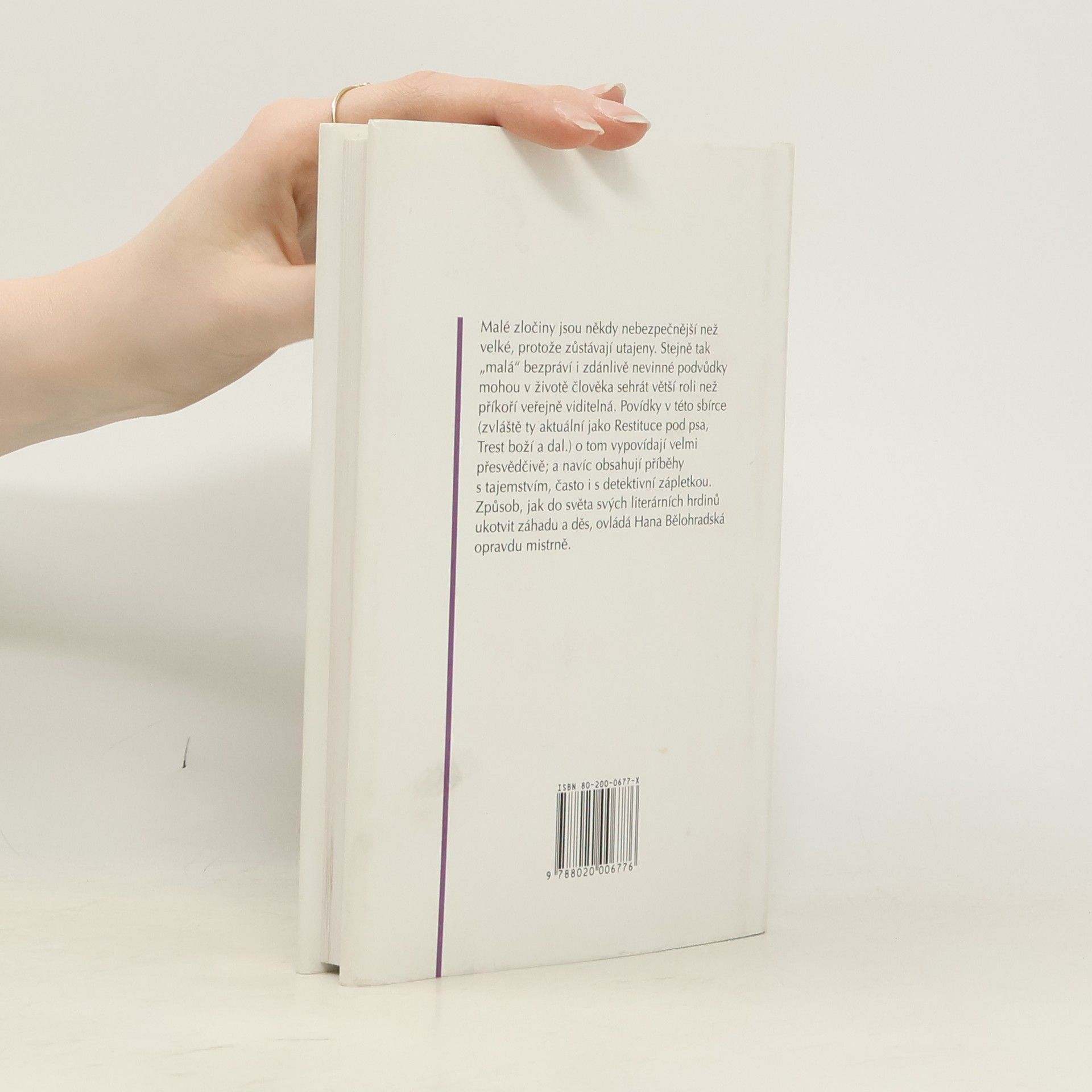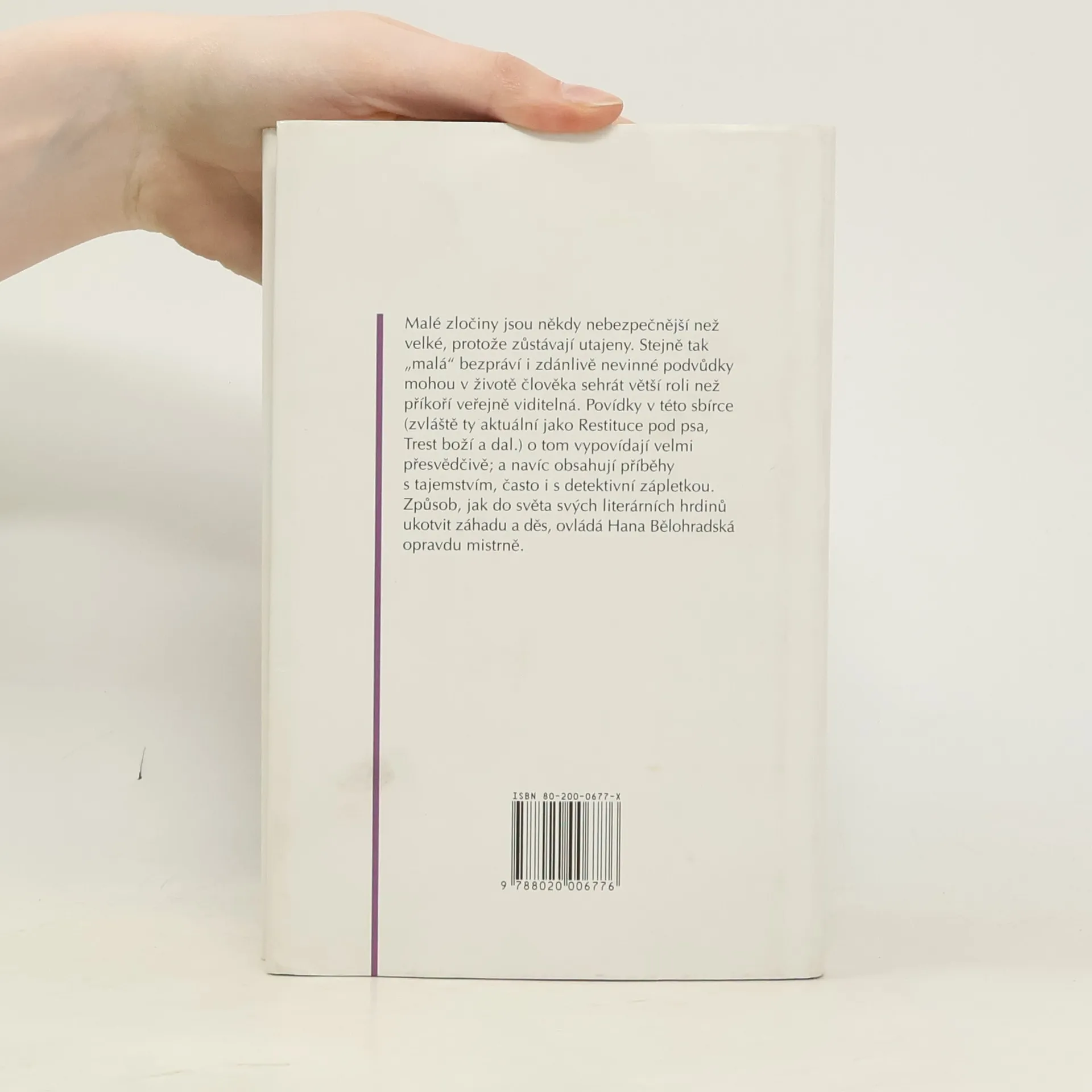 Třináct psychologických povídek - útržků ze života, okořeněných dávkou tajemna a skrytých zločinů. Povídky, jejichž náměty jsou různorodé a zdánlivě obyčejné /manželství, vztahy na pracovišti, nemocné dítě, restituce apod./, autorka obratně vyhrocuje do prazvláštních, tajemných příběhů se zápletkami někdy kriminálními, jindy děsivě záhadnými. Malá mistrovská dílka rozkrývají podivnosti lidské duše, jsou napsána poutavě, efektně a s citem pro překvapivá zakončení.