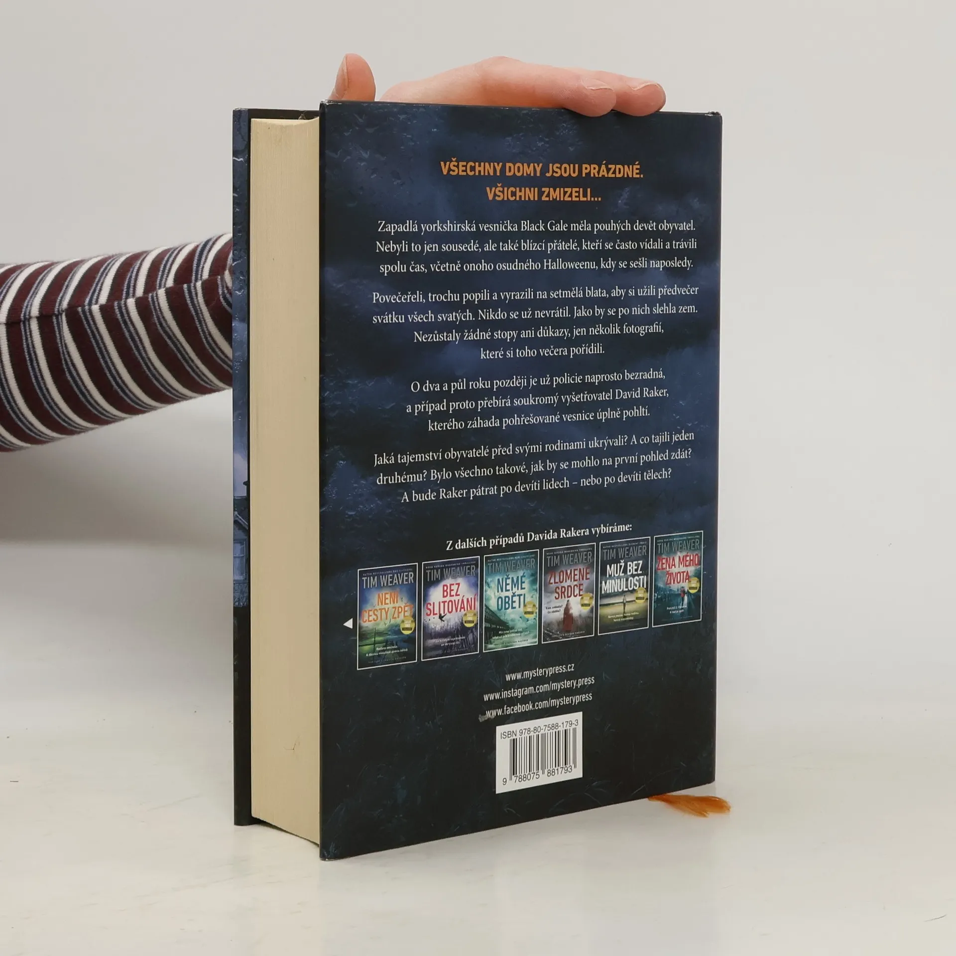 VŠECHNY DOMY JSOU PRÁZDNÉ. VŠICHNI ZMIZELI… Zapadlá yorkshirská vesnička Black Gale měla pouhých devět obyvatel. Nebyli to jen sousedé, ale také blízcí přátelé, kteří se často vídali a trávili spolu čas, včetně onoho osudného Halloweenu, kdy se sešli naposledy. Povečeřeli, trochu popili a vyrazili na setmělá blata, aby si užili předvečer svátku všech svatých. Nikdo se už nevrátil. Jako by se po nich slehla zem. Nezůstaly žádné stopy ani důkazy, jen několik fotografií, které si toho večera pořídili. O dva a půl roku později je už policie naprosto bezradná, a případ proto přebírá soukromý vyšetřovatel David Raker, kterého záhada pohřešované vesnice úplně pohltí. Jaká tajemství obyvatelé před svými rodinami ukrývali? A co tajili jeden druhému? Bylo všechno takové, jak by se mohlo na první pohled zdát? A bude Raker pátrat po devíti lidech – nebo po devíti tělech?