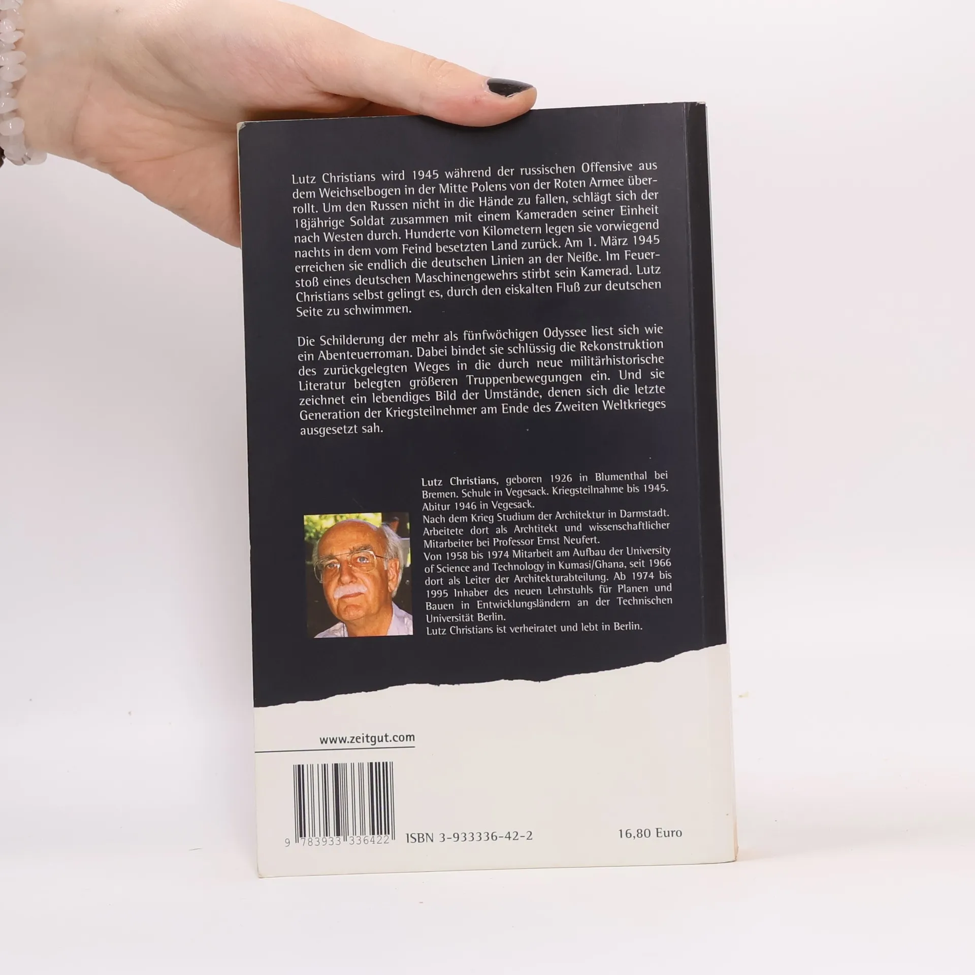 Lutz Christians wird 1945 während der russischen Offensive aus dem Weichselbogen in der Mitte Polens von der Roten Armee überrollt. Um den Russen nicht in die Hände zu fallen, schlägt sich der 18jährige Soldat zusammen mit einem Kameraden seiner Einheit nach Westen durch. Am 1. März 1945 erreichen sie endlich die deutschen Linien an der Neiße. Im Feuerstoß eines deutschen Maschinengewehrs stirbt sein Kamerad. Lutz Christians selbst gelingt es, durch den eiskalten Fluß zur deutschen Seite zu schwimmen. Die Schilderung der mehr als fünfwöchigen Odyssee liest sich wie ein Abenteuerroman. Sie ist zugleich eine mit wissenschaftlicher Akribie und anhand neuester militärhistorischer For-schungsergebnisse erfolgte Rekonstruktion des Weges und der damaligen Truppenbewegungen. Und sie zeichnet ein lebendiges Bild der Umstände, denen sich die letzte Generation der Kriegsteilnehmer am Ende des Zweiten Weltkrieges ausgesetzt sah