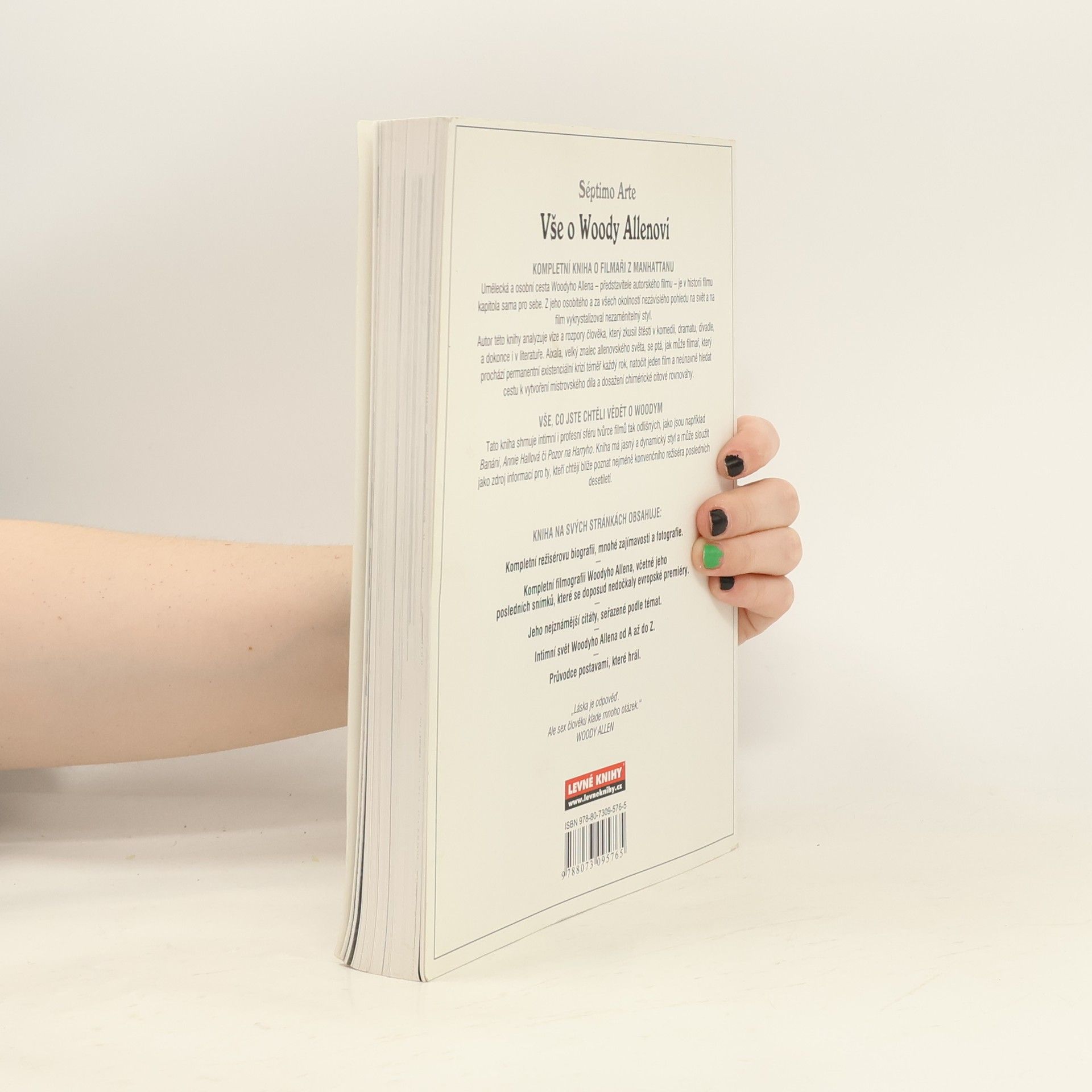 Allan Steward Koningsberg, alias Wood Allen. Sám o sobě tvrdí, že jediné co umí, tak je napsat film a natáčet filmy o nervácích, za kterého se taky považuje, a pak se zklidní a něco o tom napíše a natočí. Rozhodně jde o osobu, která obohatila světovou kinematografii a právě o jeho životě je tato kniha.