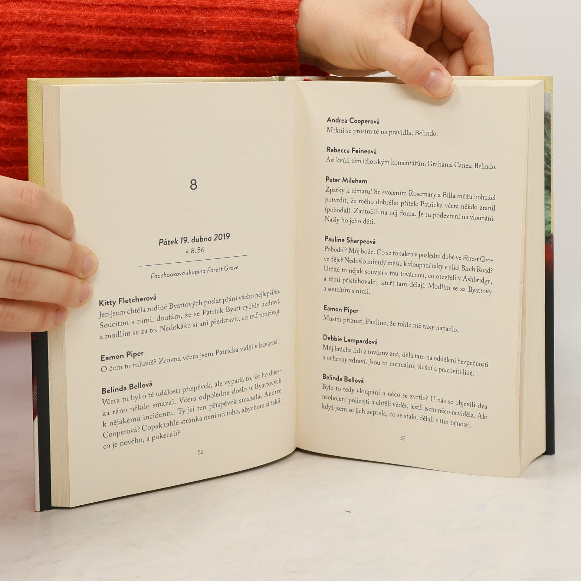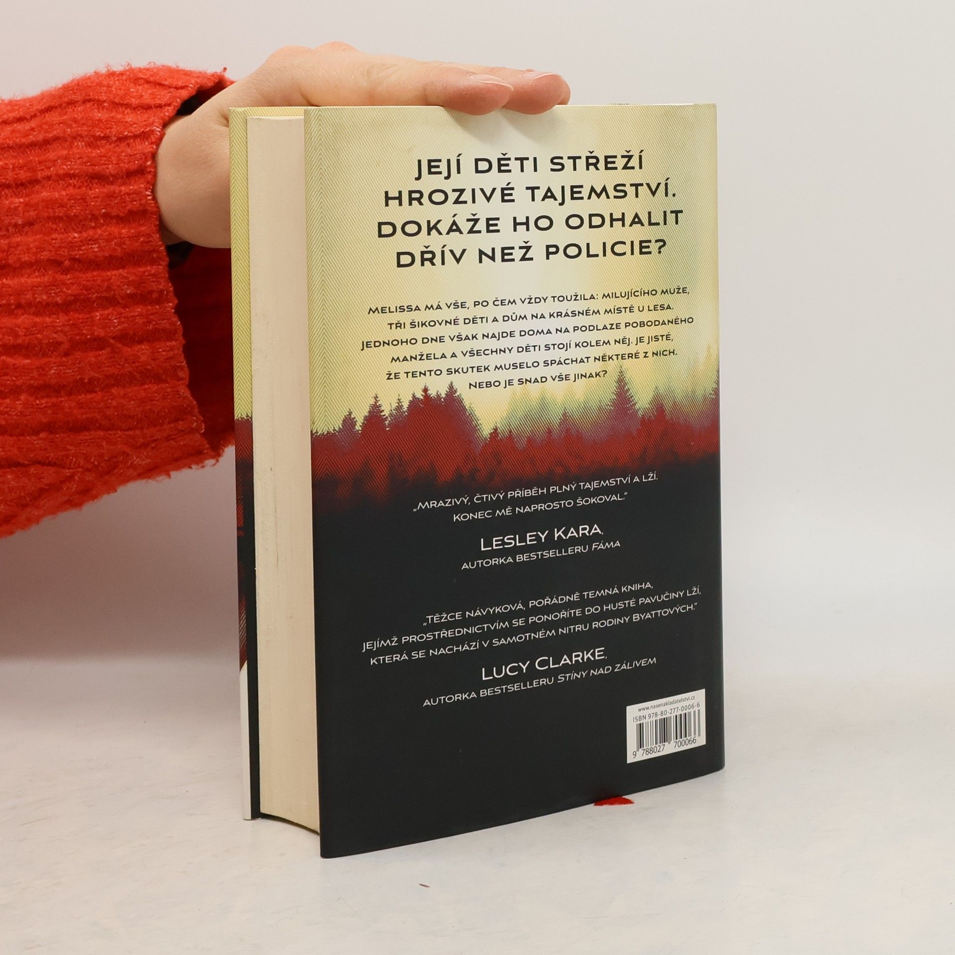 Děti střeží hrozivé tajemství. Dokáže ho jejich matka odhalit dřív než policie? Melissa Byattová žije na malé vesnici Forest Grove. Životy lidí v místní komunitě jsou vzájemně úzce propojené. Melissin život je zdánlivě dokonalý – má milujícího manžela, tři šikovné děti a dům na krásném místě u lesa. Ale zdání klame. Jednou odpoledne, když přijde Melissa domů, stane se svědkem něčeho nepředstavitelného: najde manžela ležet pobodaného na podlaze. Děti jen stojí kolem a tiše na něj zírají. Ke svému zděšení si Melissa postupně uvědomí, že trestný čin musel spáchat někdo z nich. Ale kdo? A jaký důvod by dítě muselo mít, aby bodlo nožem vlastního otce? Váhá, co má udělat, ale pak se ve zlomku vteřiny rozhodne děti chránit, a to i za cenu, že bude lhát policii. Když však někdo z vesnice začne tvrdit, že ví víc, než by měl, Melissa začne v rámci vlastního pátrání odhalovat další tajemství, o nichž neměla ani tušení. Dokáže zjistit pravdu, zabránit skandálu a udržet rodinu pohromadě? A jsou děti skutečně tak nevinné, jak tvrdí?