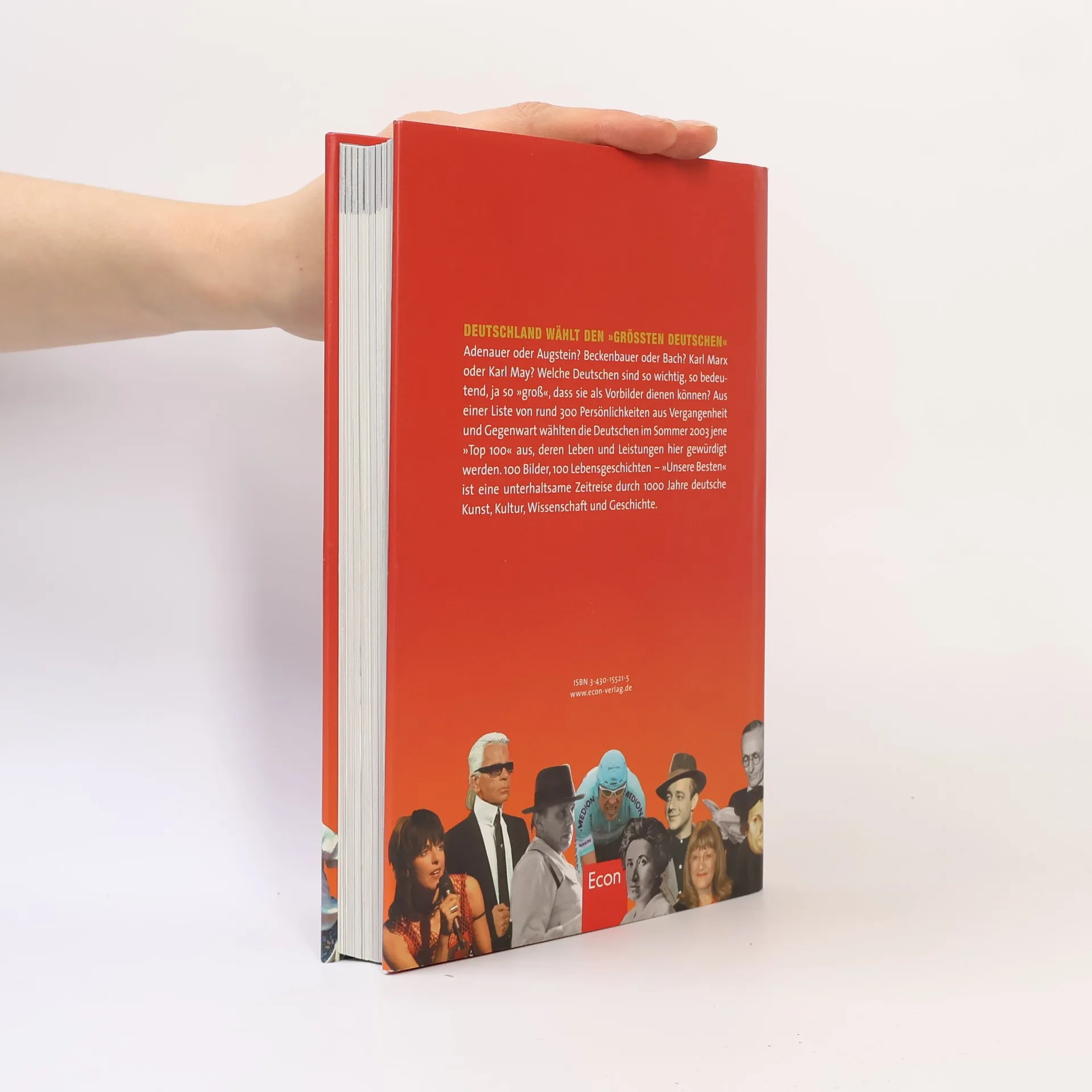 Goethe, Gottschalk, Luther, Lagerfeld, Beethoven und Bohlen: Sie alle zählen zu den „100 größten Deutschen“, gekürt von ZDF-Zuschauern in einer Aktion im Sommer und Herbst 2003. Diese Auswahl umfasst Persönlichkeiten, die sich durch herausragende Leistungen, Erfindergeist oder charakterliche Stärke hervorgetan haben. Das Ergebnis ist eine vielfältige Mischung, die in einer großen Fernsehshow und in einem begleitenden Buch festgehalten wurde. Die ZDF-Historiker Guido Knopp und Peter Arens haben die Biografien der „100 größten Deutschen“ zusammengefasst, wobei jeder Kandidat mit einem großformatigen Porträt und einem zweiseitigen Kurzlebenslauf vorgestellt wird. Die Texte sind prägnant und beleuchten die wichtigsten Lebensstationen und Erfolge. Trotz des knappen Umfangs bieten sie oft tiefere Einblicke als ein Lexikonartikel, da sie nicht nur Fakten präsentieren, sondern auch bedeutende Geschichten und Einschätzungen enthalten. Über die Auswahl kann man diskutieren: Hat Heino wirklich einen Platz neben Alexander von Humboldt oder Hildegard von Bingen verdient? Die Autoren befürworten diese Debatte und streben nach demokratischer Vielfalt. Die 100 Persönlichkeiten sind alphabetisch angeordnet, und das ZDF überlässt es den Zuschauern und Lesern, selbst zu entscheiden, wer zu den Besten der Besten zählt.