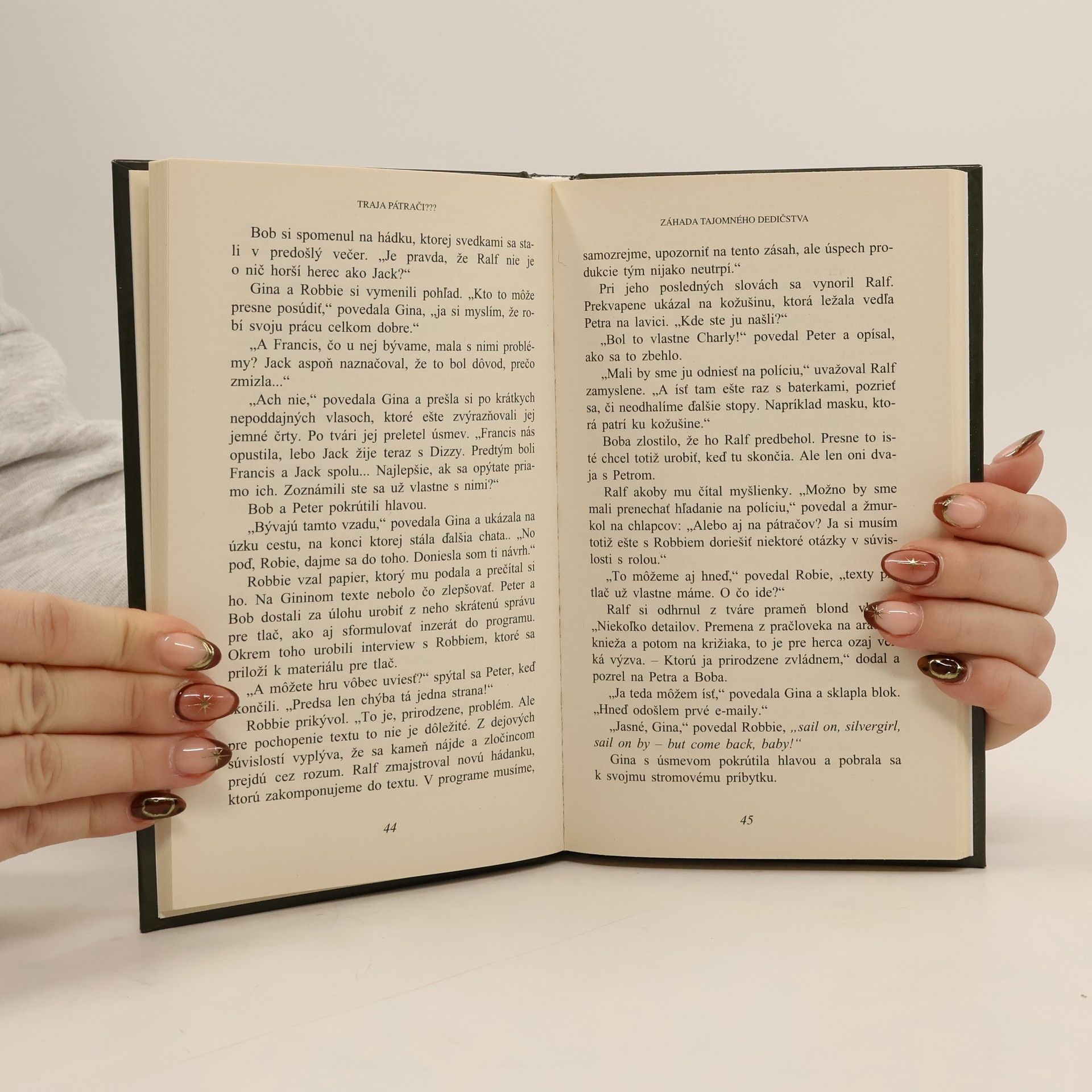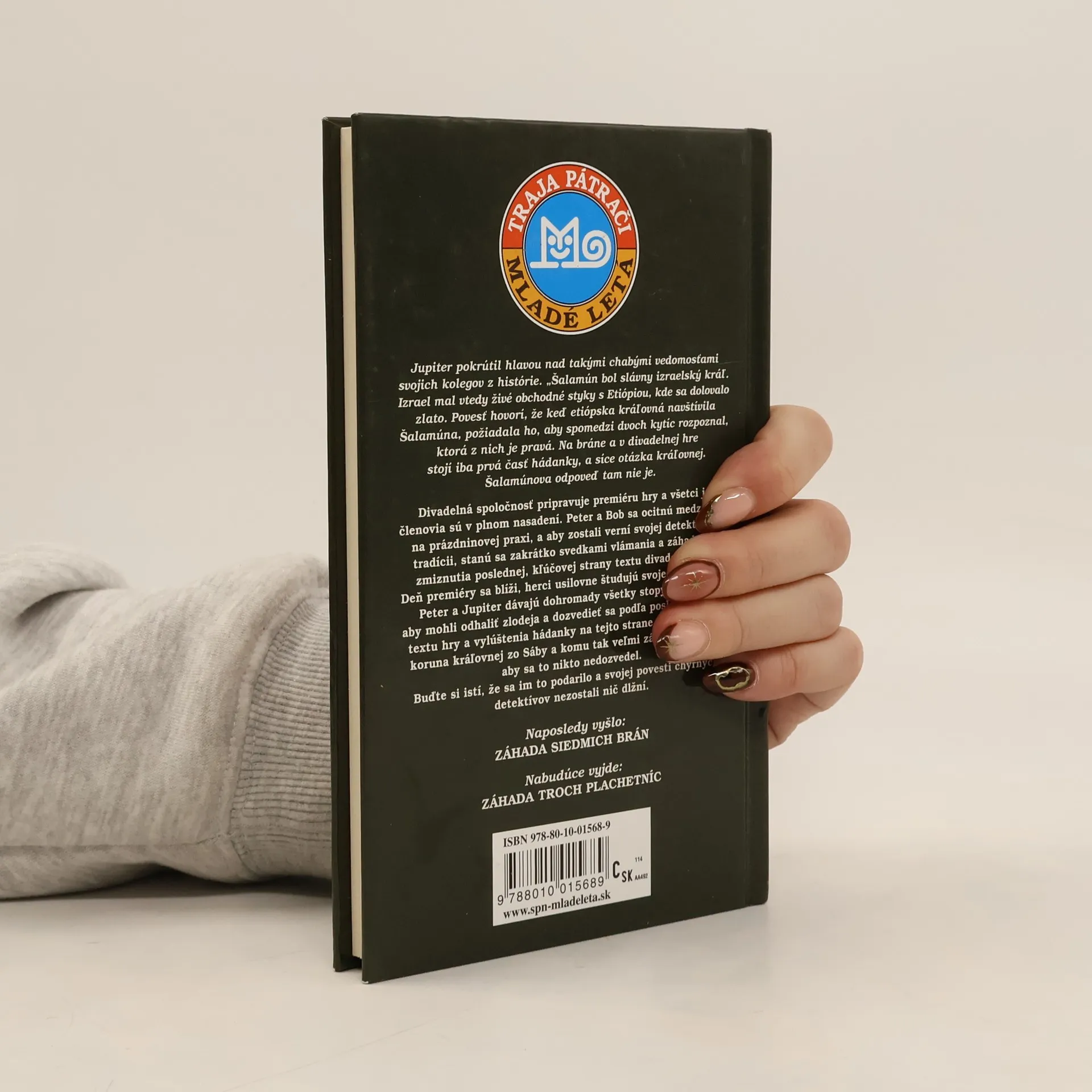 Divadelná spoločnosť pripravuje premiéru hry a všetci jej členovia sú v plnom nasadení. Peter a Bob sa ocitnú medzi nimi na prázdninovej praxi, a aby zostali verní svojej detektívnej tradícii, stanú sa zakrátko svedkami vlámania a záhadného zmiznutia poslednej, kľúčovej strany textu divadelnej hry. Deň premiéry sa blíži, herci usilovne študujú svoje úlohy a Bob, Peter a Jupiter dávajú dohromady všetky stopy a indície, aby mohli odhaliť zlodeja a dozvedieť sa podľa poslednej strany textu hry a vylúštenia hádanky na tejto strane, kde je ukrytá koruna kráľovnej zo Sáby a komu tak veľmi záležalo na tom, aby sa to nikto nedozvedel. Buďte si istí, že sa im to podarilo a svojej povesti chýrnych detektívov nezostali nič dlžní.
