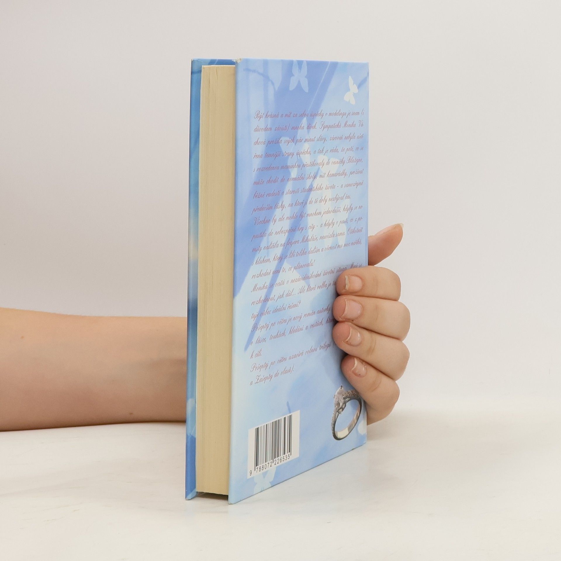 Být krásná a mít za sebou úspěchy v modelingu je snem (i důvodem závisti) mnoha dívek. Sympatická Monika Váchová prožila svých pár minut slávy a zároveň nebyla ušetřena temnější strany úspěchu, a tak je ráda, že poté, co se s rozvedenou maminkou přestěhovaly do vesničky Blažejov, může chodit do normální školy, mít kamarádky, prožívat běžné radosti a starosti studentského života – a samozřejmě především lásky, na které jí do té doby nezbýval čas. Všechno by ale mohlo být mnohem jednodušší, kdyby se nepustila do nebezpečné hry s city – a kdyby v pasti, co z pomsty nalíčila na frajera Mikuláše, neuvízla sama. Otěhotnět s klukem, který se líbí tolika dalším a věrnost mu moc neříká , rozhodně není to, co plánovala! Monika se ocitá v nezáviděníhodné životní situaci. Musí se rozhodnout, jak dál.Ale která volba je ta pravá? A existuje vůbec ideální řešení? Pošeptej po větru je nový román autorky Lenky Lanczové o lásce, touhách, hledání a cestách, které ne vždy vedou k cíli. Pošeptej po větru uzavírá volnou trilogii (Šeptej do ticha a Zašeptej do vlasů). V knize také vystupuje postava Tomáše Koubka z knih Hořká chuť lásky a Postel plná růží. Tomáš totiž chodí určitý čas s Mikulášovou sestrou Karin.