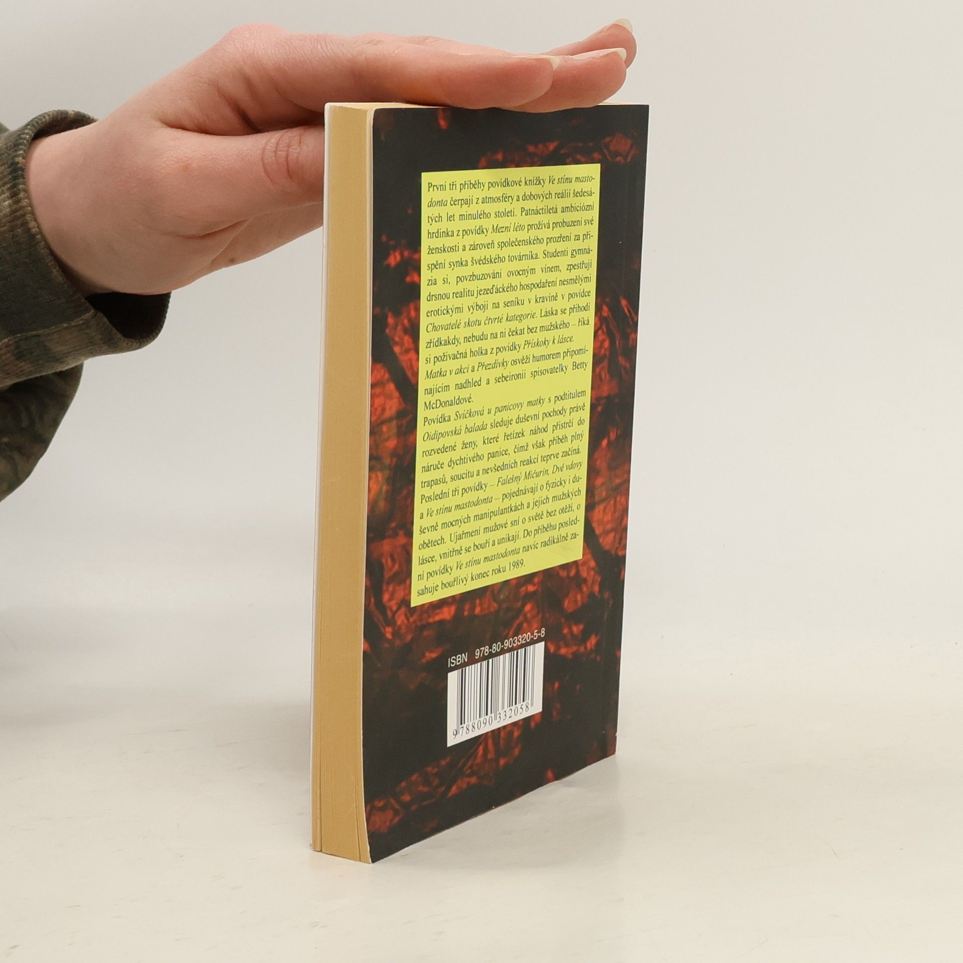 Kniha povídek autorky bestselleru "Bereme, co je". První tři příběhy povídkové knížky Ve stínu mastodonta čerpají z atmosféry a dobových reálií šedesátých let minulého století. Patnáctiletá ambiciózní hrdinka z povídky Mezní léto prožívá probuzení své ženskosti a zároveň společenského prozření za přispění synka švédského továrníka. Studenti gymnázia si, povzbuzováni ovocným vínem, zpestřují drsnou realitu jezeďáckého hospodaření nesmělými erotickými výboji na seníku v kravíně v povídce Chovatelé skotu čtvrté kategorie. Láska se přihodí zřídkakdy, nebudu na ni čekat bez mužského — říká si poživačná holka z povídky Přískoky k lásce. Matka v akci a Přezdívky osvěží humorem připomínajícím nadhled a sebeironii spisovatelky Betty McDonaldové. Povídka Svíčková u panicovy matky s podtitulem Oidipovská balada sleduje duševní pochody právě rozvedené ženy, které řetízek náhod přistrčí do náruče dychtivého panice, čímž však příběh plný trapasů, soucitu a nevšedních reakcí teprve začíná. Poslední tři povídky — Falešný Mičurin, Dvě vdovy a Ve stínu mastodonta — pojednávají o fyzicky i duševně mocných manipulantkách a jejich mužských obětech. Ujařmení mužové sní o světě bez otěží, o lásce, vnitřně se bouří a unikají. Do příběhu poslední povídky Ve stínu mastodonta navíc radikálně zasahuje bouřlivý konec roku 1989.