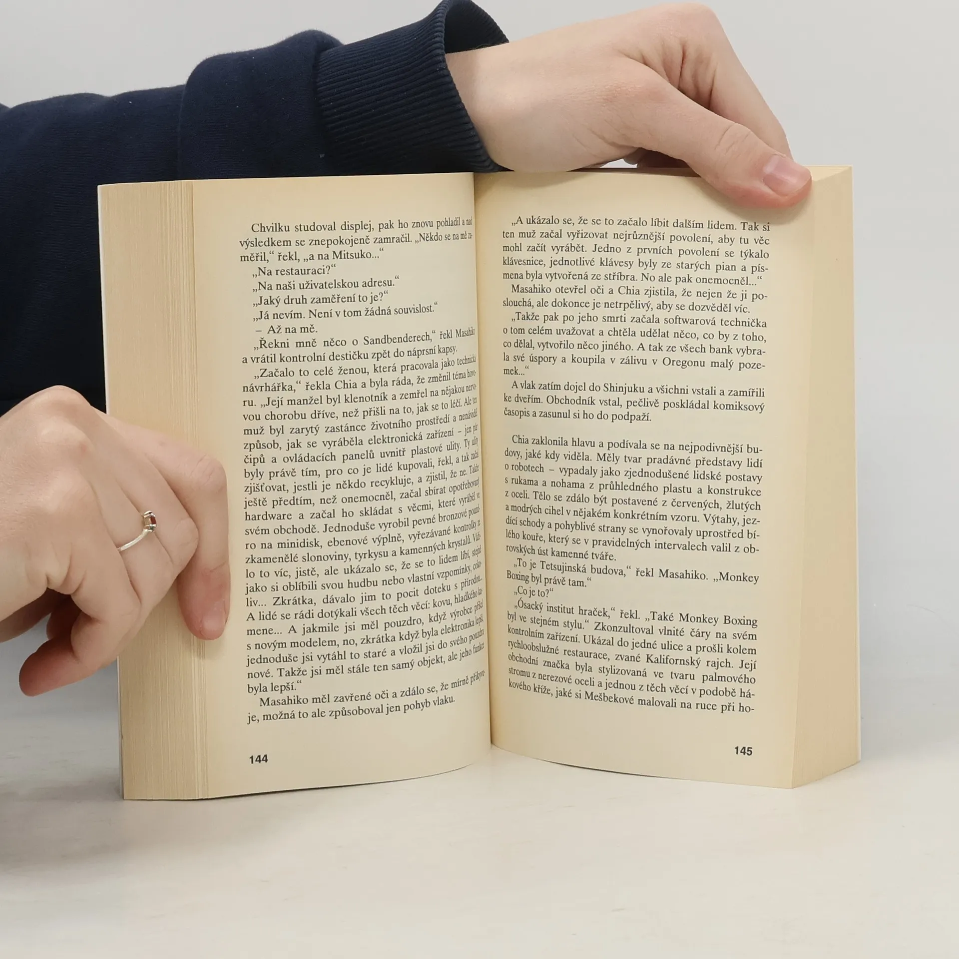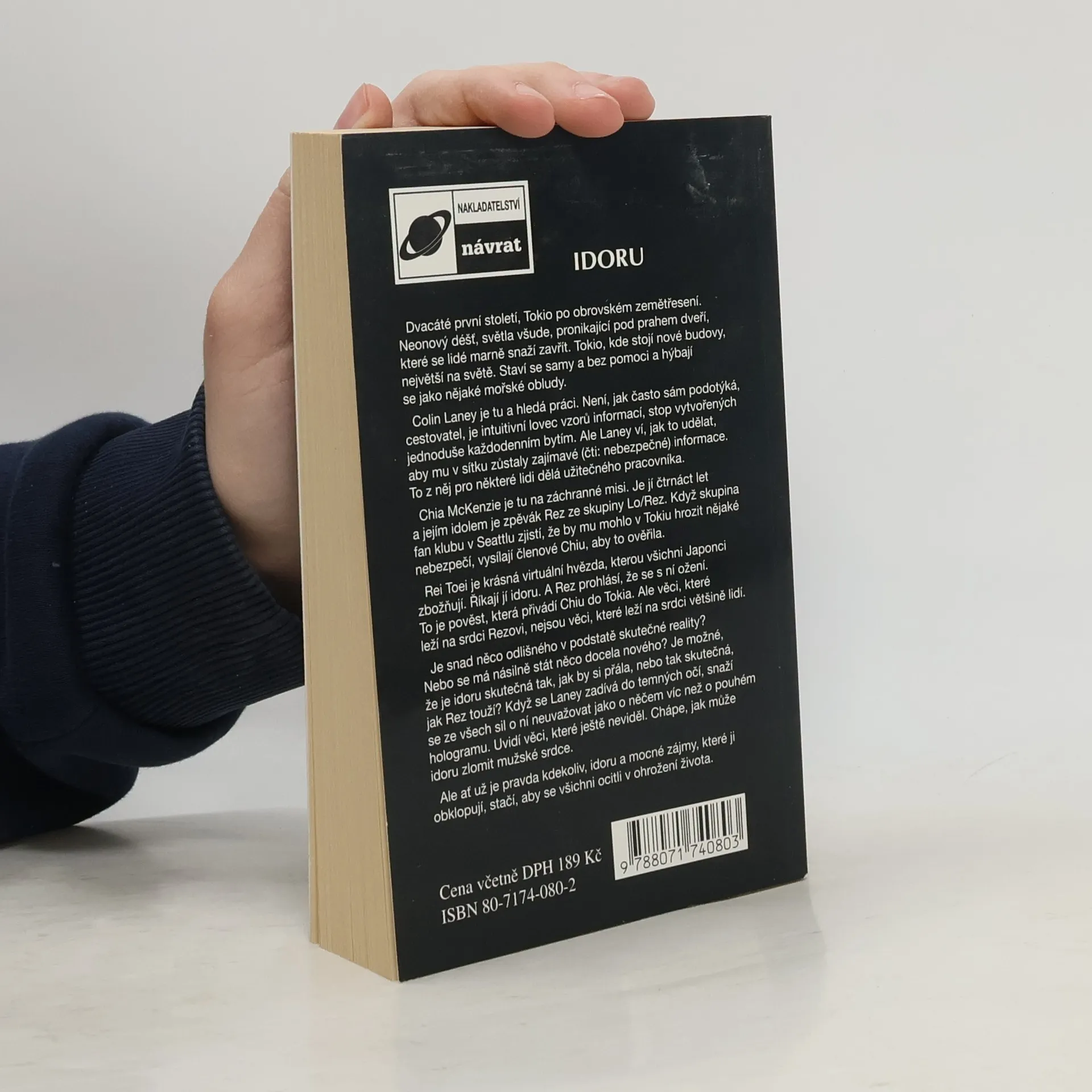 Dvacáté první století, Tokio po obrovském zemětřesení. Město je zaplaveno neonovými světly a novými, samostatně se pohybujícími budovami. Colin Laney hledá práci jako intuitivní lovec vzorů informací, zaměřující se na nebezpečné informace, které z něj činí cenného pracovníka. Chia McKenzie, čtrnáctiletá dívka a fanoušek zpěváka Reze ze skupiny Lo/Rez, je v Tokiu na záchranné misi. Fanoušci zjistili, že by mu mohlo hrozit nebezpečí, a poslali Chiu, aby to ověřila. Rei Toei, krásná virtuální hvězda zvaná idoru, je idol mnoha Japonců a Rez prohlásil, že se s ní ožení. Tato zpráva přivádí Chiu do Tokia, avšak Rezovy skutečné pocity se liší od očekávání většiny lidí. Je možné, že idoru je skutečná tak, jak si přeje, nebo tak skutečná, jak touží Rez? Laney, když se dívá do jejích temných očí, se snaží neuvažovat o ní jako o něčem víc než hologramu. Objevuje nové perspektivy a chápe, jak může idoru zlomit mužské srdce. Avšak idoru a mocné zájmy kolem ní představují hrozbu, která ohrožuje všechny zúčastněné.