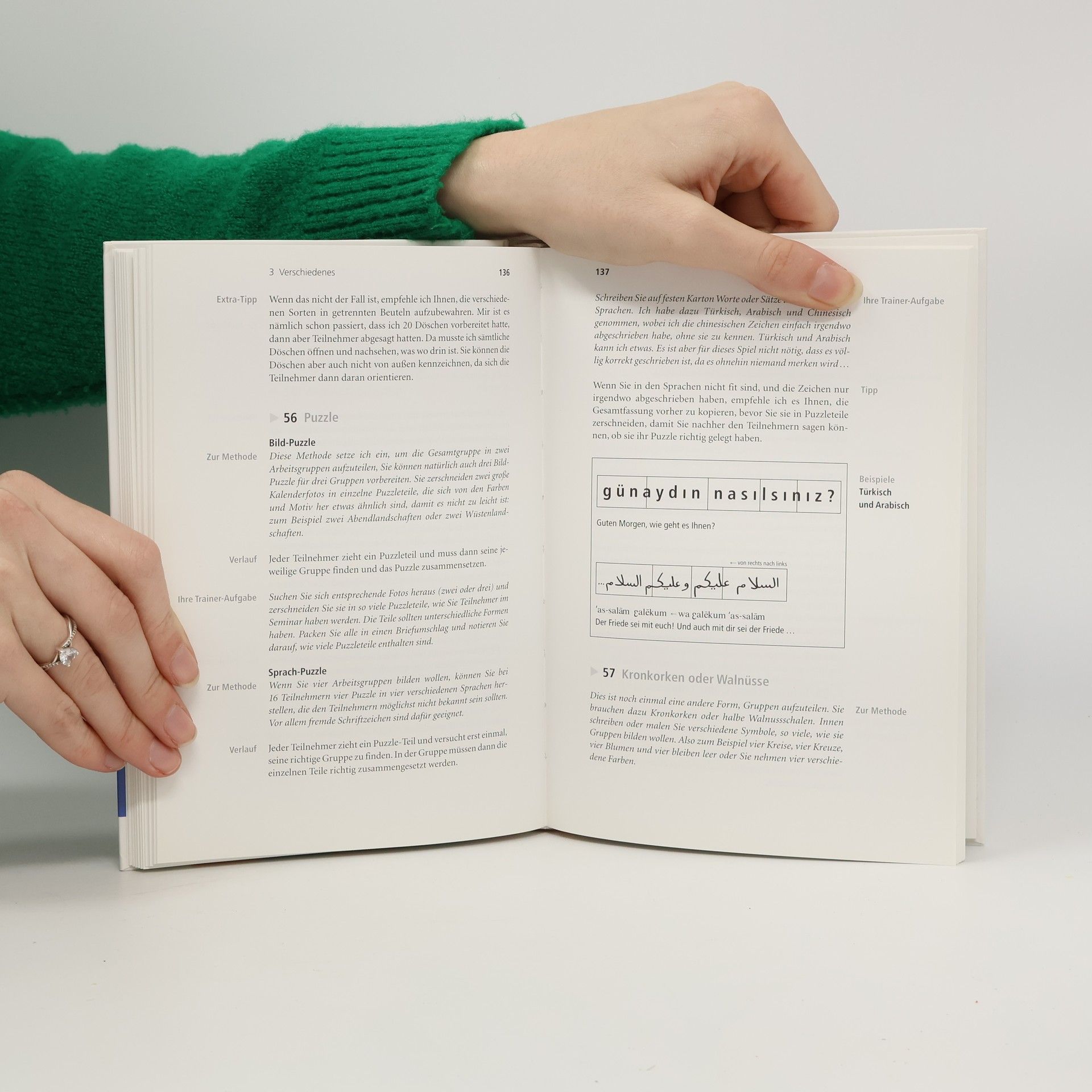 Methoden, ein Seminar zu leiten, gibt es viele. Wie aber Seminarteilnehmer begeistern, mitzumachen, und einen effektiven Nutzen davon zu tragen? Auf die Methode kommt es an! Dieses Buch strotzt vor Ideen und deren Umsetzungen für alle möglichen Seminarsituationen. Methoden bekannter Trainer, die sich bewährt haben, werden hier ebenso erwähnt wie eher unkonventionelle Maßnahmen, die zum Seminarerfolg beitragen. Unabhängig von den Themenschwerpunkten angebotener Seminare bieten zahlreiche Querverweise, Hinweise auf Trainerstile und nützliche Tipps für Trainer und solche, die es werden wollen, interessante und originelle Anregungen. Aus dem Inhalt: - Seminare planen, Vorbereitung- Einstieg in das Seminarthema- Vortrag: Vorbereitung- Arbeit am Thema: Gruppenarbeit optimal organisieren, Plenum leiten- Gruppenaufteilungsspiele: Paare in Gruppen organisieren- Kreativitätsspiele: Zur Motivationssteigerung und Gedächtnistraining- Teilnehmer-Betreuung: Von Ideen-Notizen zum Schwarzen Brett- Tagesauswertung und Abschlussauswertung: Verschiedene Möglichkeiten- Bewertung des Seminars: Wie Sie Kritik positiv nutzen- Was Sie Ihren Teilnehmern mit nach Hause geben:  Wege zur Wahrnehmung und Umsetzung des Gelernten