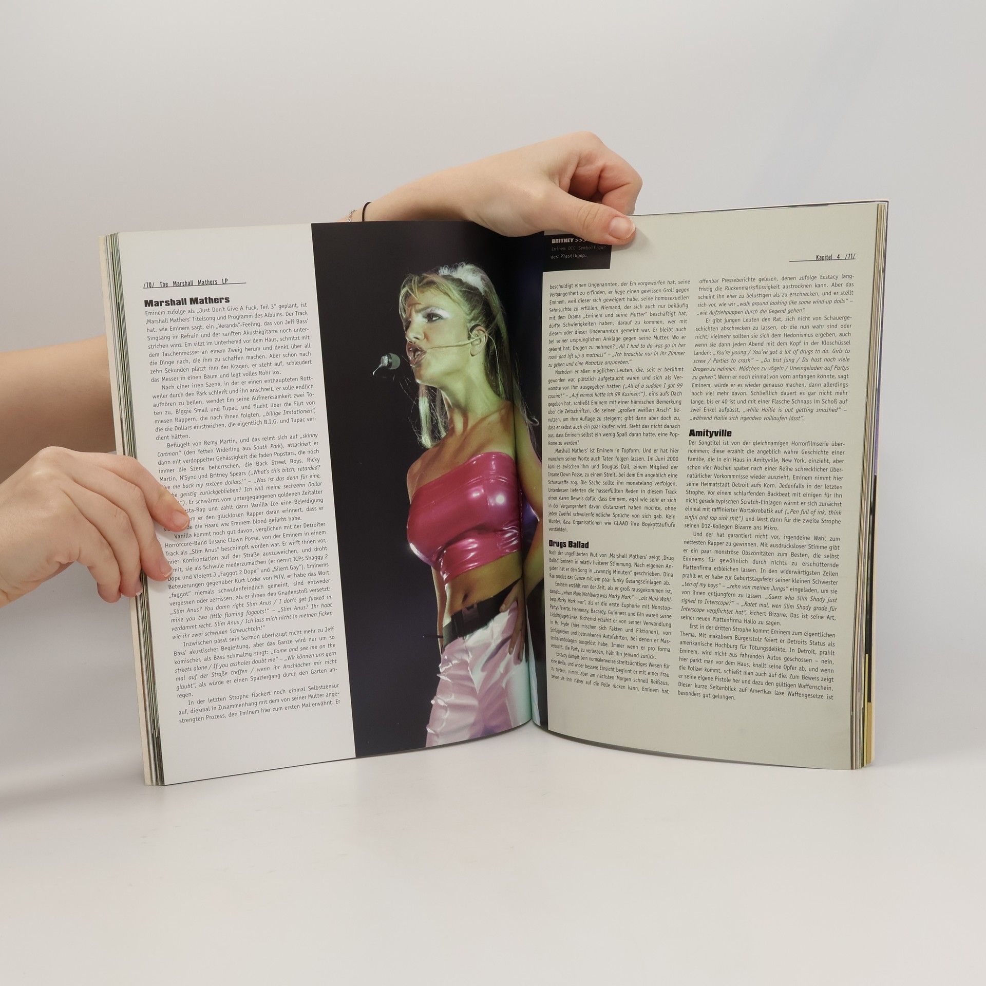 In Eminems weißem Körper steckt eine schwarze Seele. Er denkt, schreibt und rappt wie ein Farbiger. Eminems Stücke strotzen vor lyrischer Genialität, satirischem Witz und erfreulich unnötiger Anstößigkeit – angefangen von seinen ersten Versuchen mit New Jacks und D-12 bis hin zu Chartstürmern wie 'My Name is', 'The Way I Am' und 'Stan'. Das erste Mal wird der Aufstieg Eminens zum Bad Boy des Rap anhand seiner Songs erzählt. Ein Highlight des großformatigen Buches sind neben der präzisen Entstehungsgeschichte der Songs die über 100 authentischen Farbfotos. Von farblosen, künstlich aufgebauten Popstars über die Frau des Vizepräsidenten der USA bis hin zu seiner eigenen Frau oder zu seiner Mutter – Eminems Werk ist durchsetzt mit vernichtendem Spott und improvisierter, lässiger lyrischer Genialität. Der Kinofilm 8 Mile hat gerade in brillanter Weise die sensationelle Lebensgeschichte dieses Künstlers auf die Leinwand gebracht. CLEANING OUT MY CLOSET ist ein Plädoyer für die intuitive, beunruhigende Existenz Eminems.