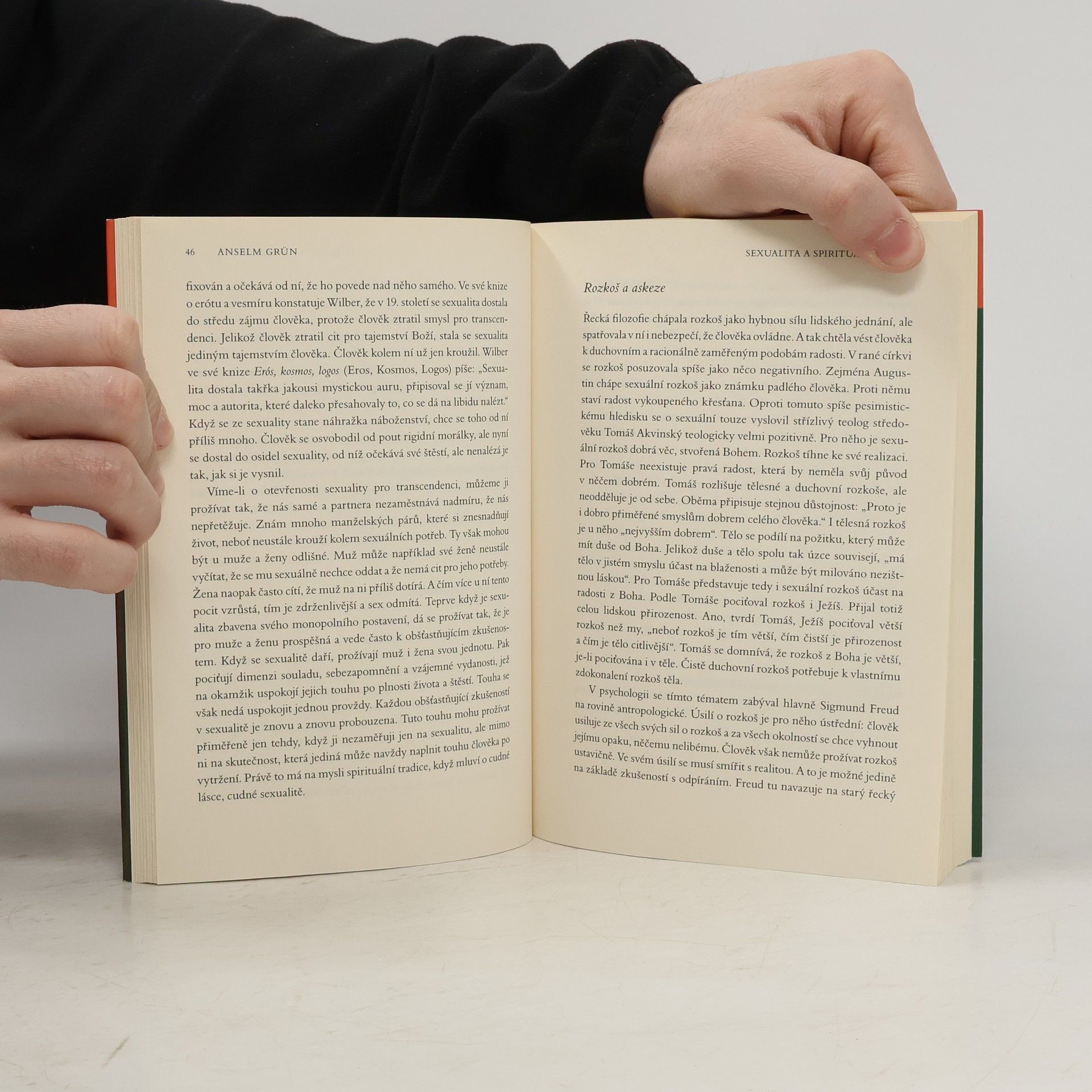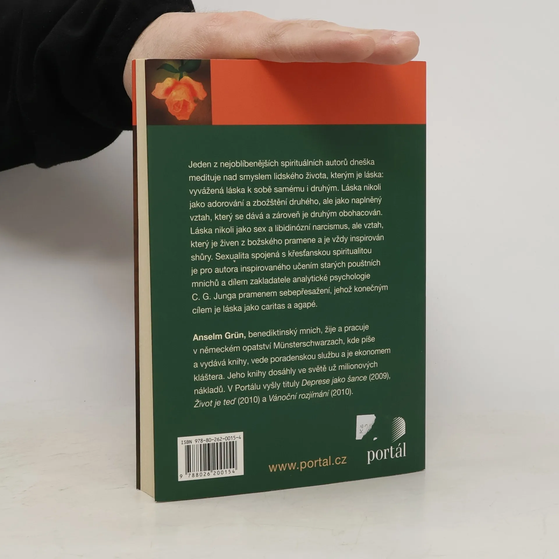Vztahy a spiritualita Jeden z nejoblíbenějších spirituálních autorů dneška medituje nad smyslem lidského života, kterým je láska: vyvážená láska k sobě samému i druhým. Láska nikoli jako adorování a zbožštění druhého, ale jako naplněný vztah, který se dává a zároveň je druhým obohacován. Láska nikoli jako sex a libidinózní narcismus, ale vztah, který je živen z božského pramene a je vždy inspirována shůry. Sexualita spojená s křesťanskou spiritualitou je pro autora, inspirovaného učením starých pouštních mnichů a dílem zakladatele analytické psychologie C. G. Junga, pramenem sebepřesažení, jehož konečným cílem je láska jako caritas a agapé. Anselm Grün je benediktinský mnich, žije a pracuje v německém opatství Münsterschwarzach, kde píše a vydává knihy, vede poradenskou službu a je ekonomem kláštera. Jeho knihy dosáhly ve světě už milionových nákladů. V Portálu vyšly Deprese jako šance (2009), Život je teď (2010) a Vánoční rozjímání (2010).