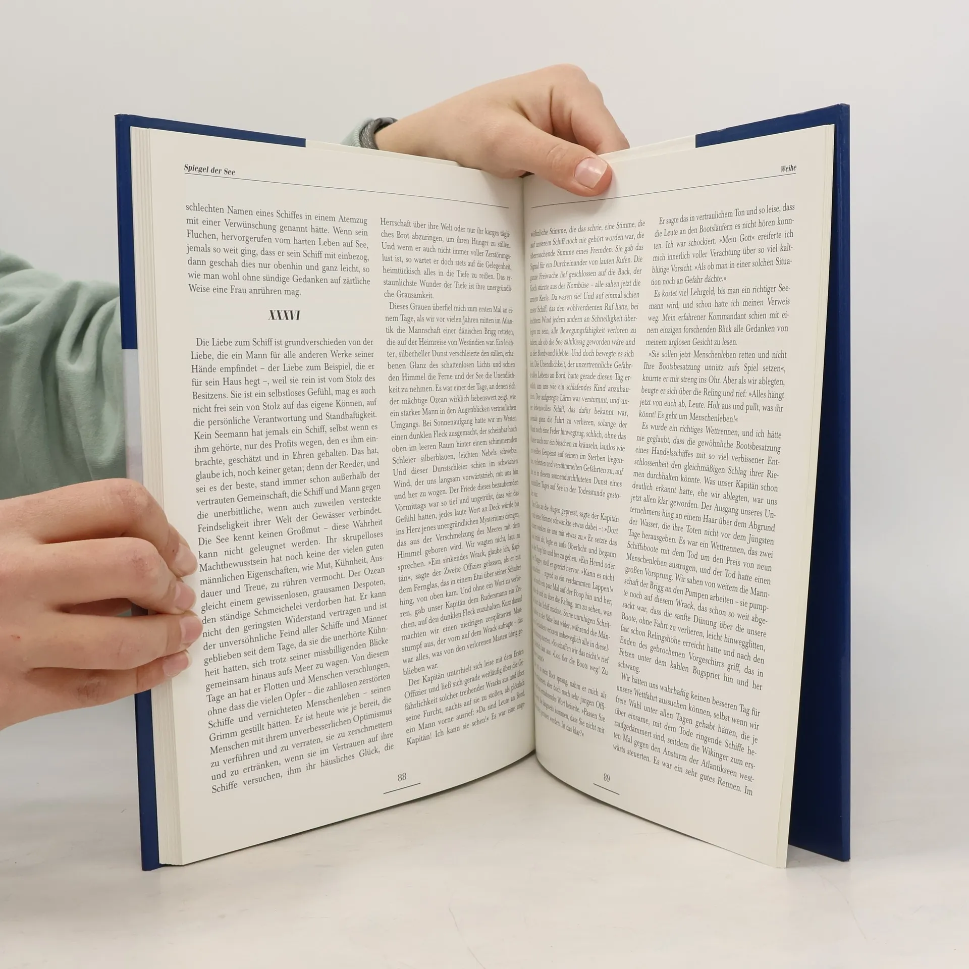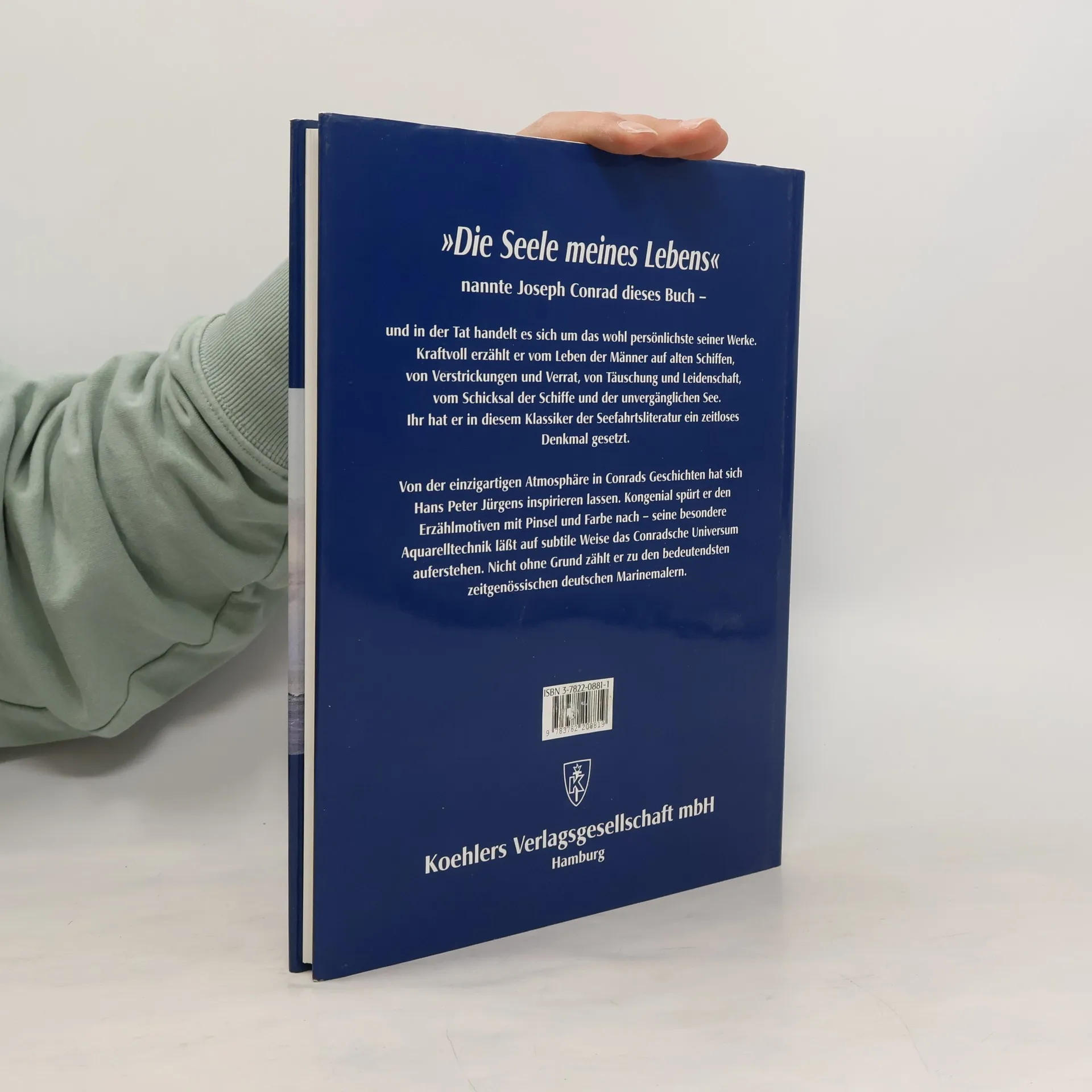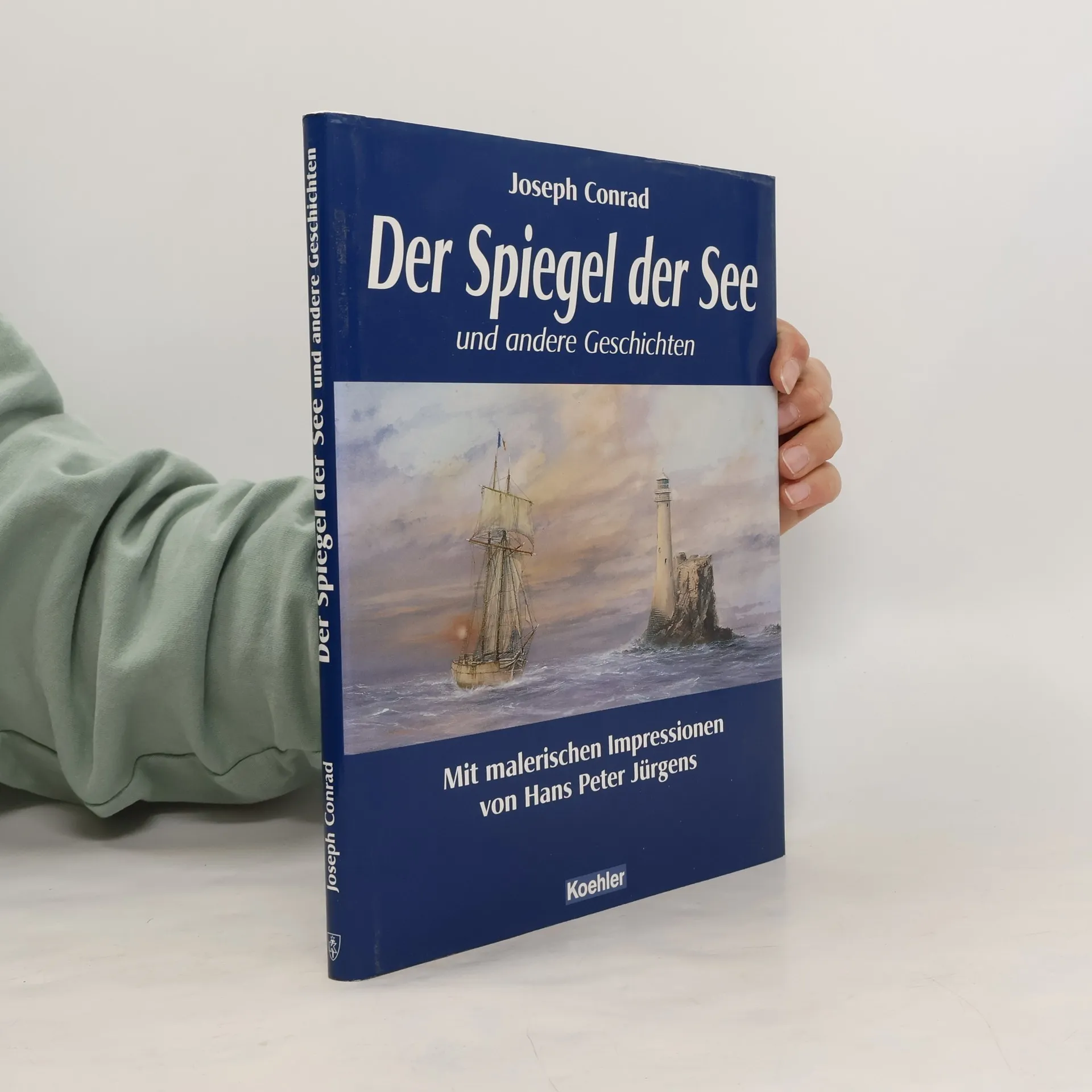 Conrad, Joseph. Der Spiegel der See und andere Geschichten. Mit malerischen Impressionen von Hans Peter Jürgens. Herausgegeben von Caroline-M. Wierig. Hamburg, Koehlers Verlagsgesellschaft, 2003. 22 x 28 cm. 120 Seiten. Hardcover/ Gebundene Ausgabe. Im originalen Schutzumschlag. Sehr guter Zustand mit minimalen Gebrauchsspuren. Enthält u.a. die folgenden Sinnbilder der Hoffnung / Die Wiege der Schifffahrt / Die Tremolino / Hans Peter Jürgens (* 3. März 1924 in Cuxhaven) ist ein deutscher Kapitän und Kap Hoornier sowie Autor. Er gilt als einer der bekanntesten Marinemaler Deutschlands. (Wikipedia)