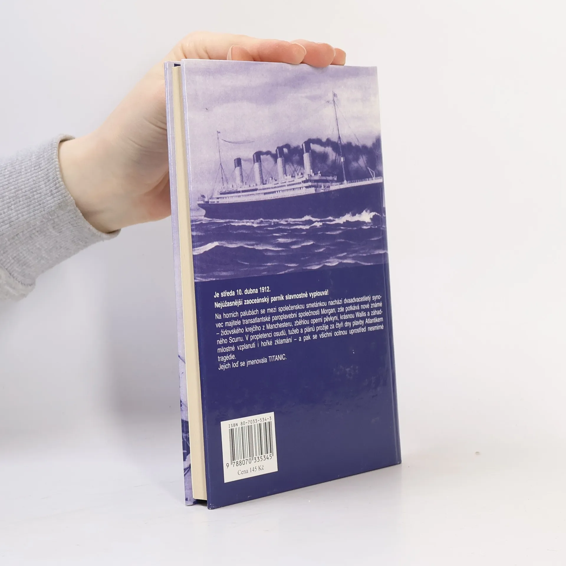 Očima mladíka z vysoké společnosti sledujeme plavbu Titaniku, společenské zábavy cestujících první třídy a tragické ztroskotání. Autorka svého hrdinu představuje zpočátku jako hejska, který se zabývá jen vztahy a zábavami příslušníků smetánky, plasticky a s mírnou ironií líčí bezstarostnou společnost a její plytké myšlení. V poslední čtvrtině knihy vidíme mladíkovýma očima postup zkázy a reakce lidí, i to, jak se ve vypjaté chvíli dokáže chovat statečně, zatímco jiným se to nedaří.