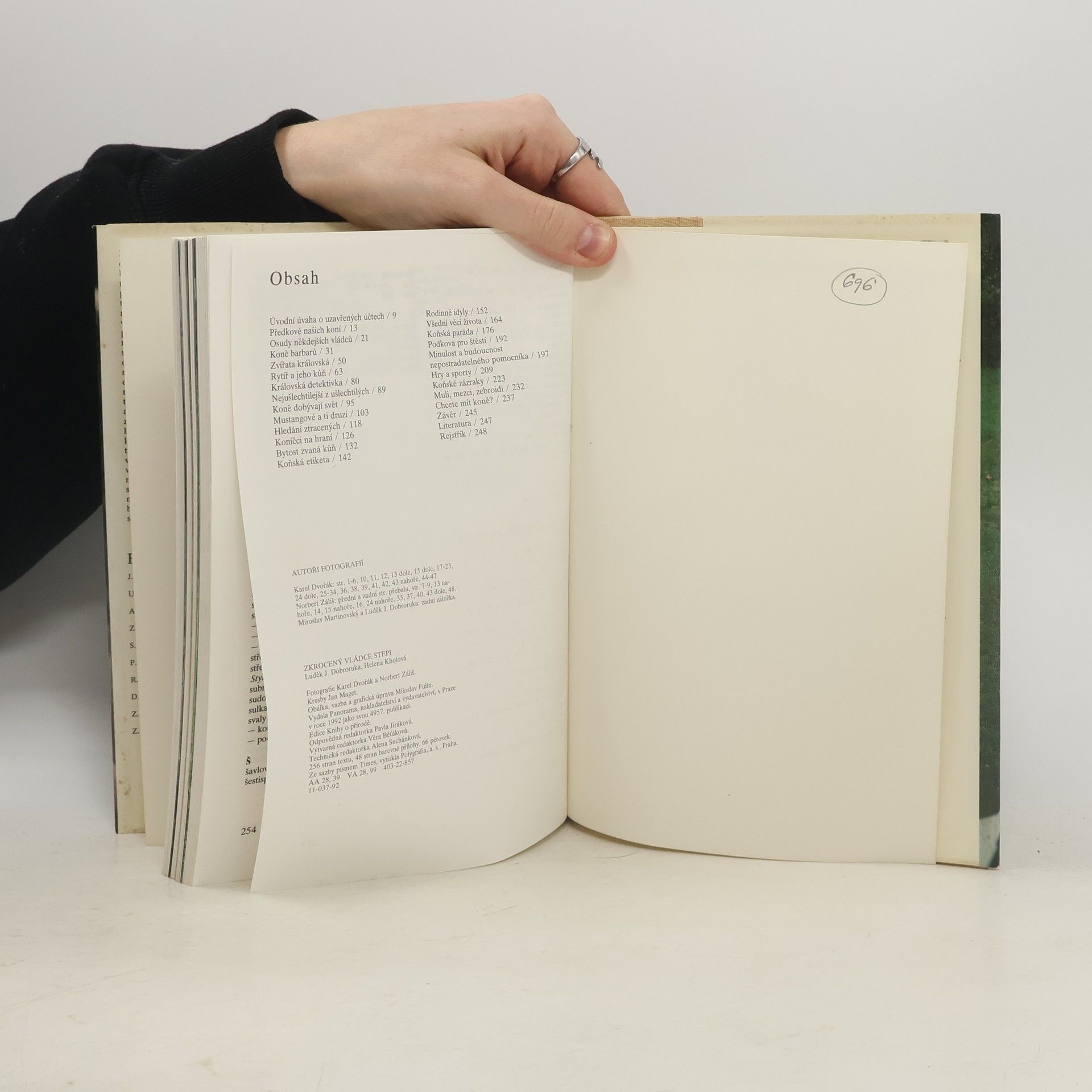 • Z historie vývoje koně, o jeho úloze v lidských dějinách, o vztahu člověka a koně. Využití koně (boj, hry, zemědělství, sport). Zajímavá kapitola o zvláštních schopnostech koní. • Fotografie, náčrtky, mapky, rejstřík.
