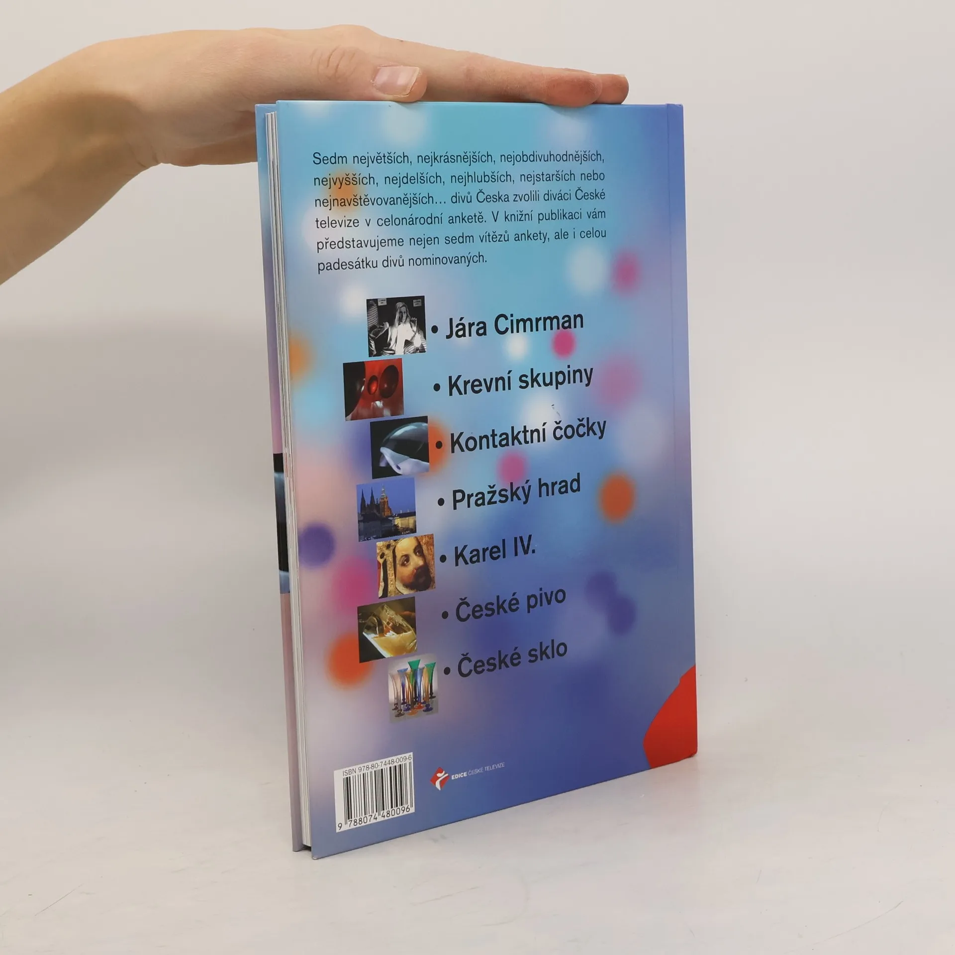 Sedm největších, nejkrásnějších, nejobdivuhodnějších, nejvyšších, nejdelších, nejhlubších, nejstarších nebo nejnavštěvovanějších divů Česka zvolili diváci České televize v celonárodní anketě. Knižní publikace představuje nejen 7 vítězů ankety, ale i celou padesátku divů nominovaných do pěti kategorií: města a místa, objevy a vynálezy, umění a kultura, výkony a rekordy a hlas lidu, která pojímá ostatní profese či výtvory.