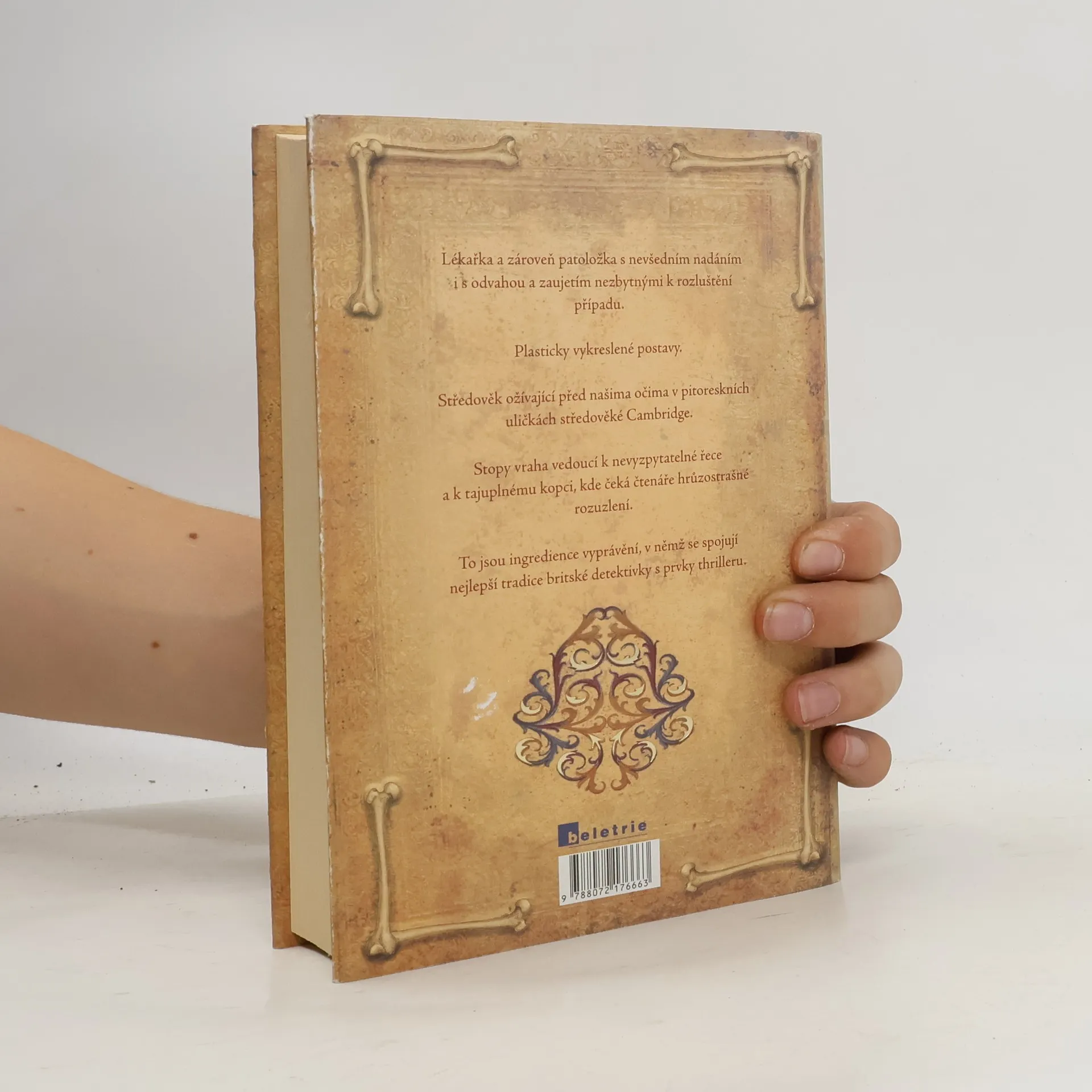 První kniha série Adélie Aguilarová. Na počátku románu, který se odehrává v Cambridgi dvanáctého století, jsou čtyři brutálně zavražděné děti. Všeobecné zděšení, obracející se proti židovské komunitě, nutí anglického krále povolat specialisty až z jižní Itálie. Do Anglie přijíždí pozoruhodná trojice sestávající z vyšetřovatele židovského původu, arabského osobního strážce a především mladé lékařky. Lékařka je "vykladačka smrti", což je raná forma povolání zvaného v současnosti soudní lékař, a zároveň hlavní hrdinka celého příběhu. Příběhu plného napětí, v němž se dramatický spád vyprávění snoubí se znamenitě konstruovanou zápletkou. Příběhu, který nám zároveň připomíná, že střetávání kultur, náboženská zaslepenost a zápas humanity s intolerancí provázejí lidstvo od nepaměti.