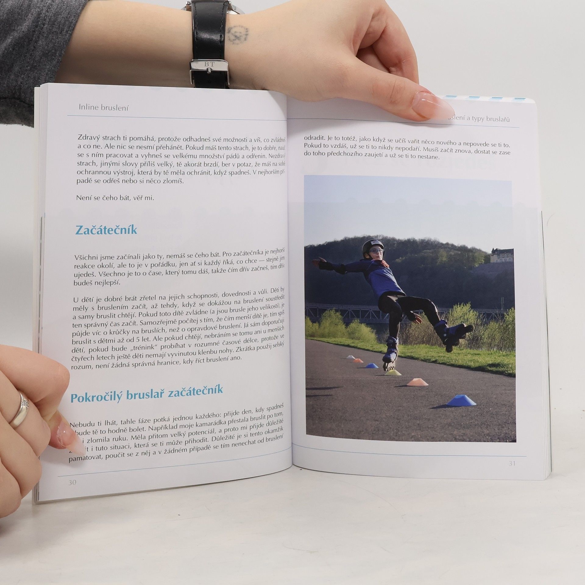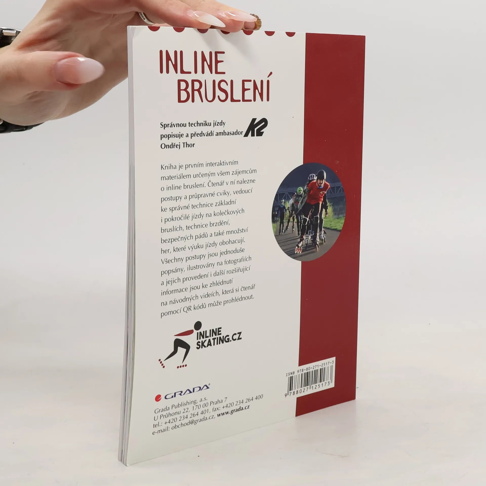 Kniha je prvním interaktivním materiálem určeným všem zájemcům o inline bruslení. Čtenář v ní nalezne postupy a průpravné cviky, vedoucí ke správné technice základní i pokročilé jízdy na kolečkových bruslích, technice brzdění, bezpečných pádů a také množství her, které výuku jízdy obohacují. Všechny postupy jsou srozumitelně popsány, ilustrovány na fotografiích a jejich provedení i další rozšiřující informace jsou ke zhlédnutí na návodných videích, která si čtenář pomocí QR kódů může velmi jednoduše prohlédnout.