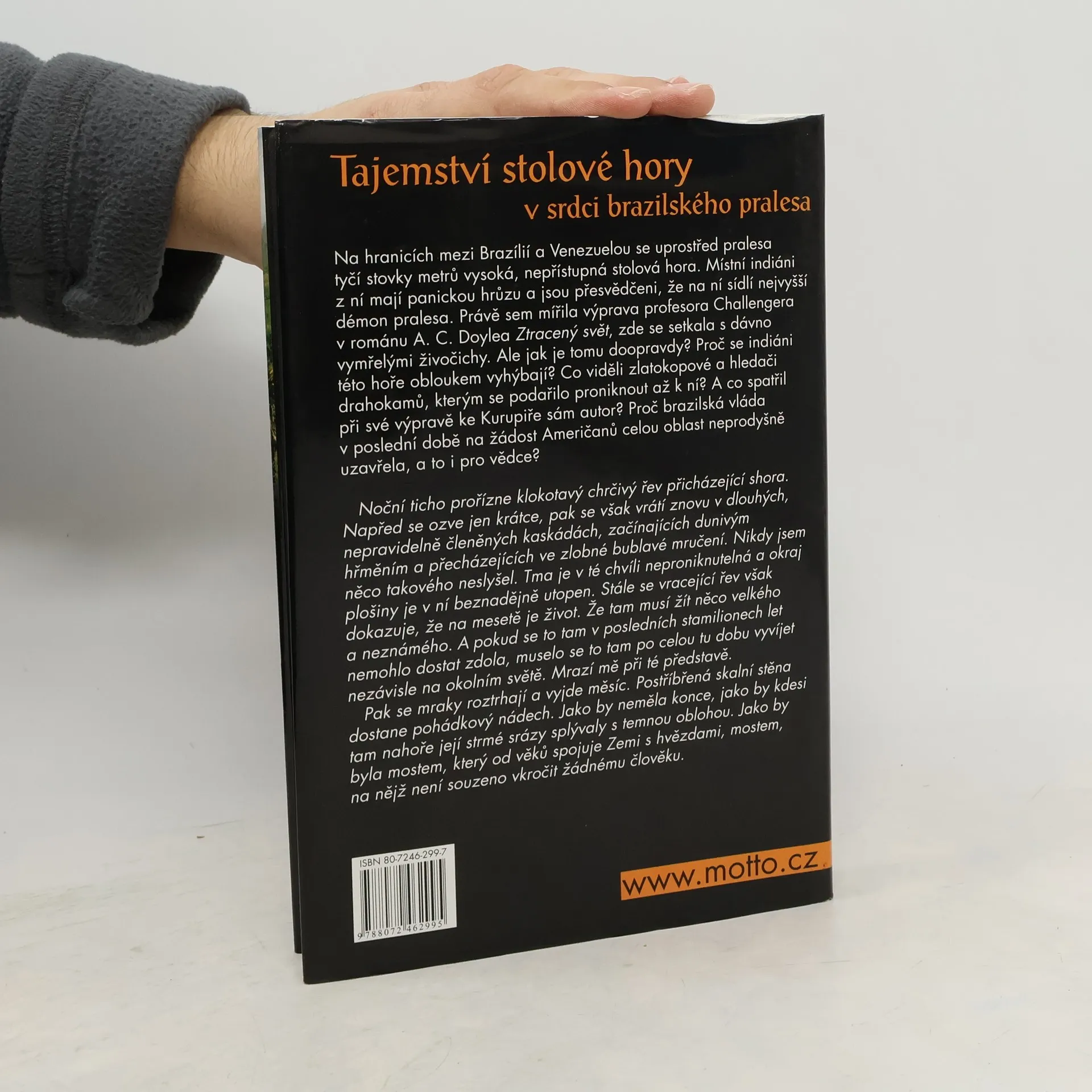 Uprostřed amazonských pralesů se tyčí nepřístupná stolová hora, která vzbuzuje panickou hrůzu místních indiánů, přesvědčených o přítomnosti nejvyššího démona pralesa. Tato hora byla cílem výpravy profesora Challengera v románu A. C. Doylea, kde se setkal s dávno vymřelými živočichy. Proč se indiáni této hory vyhýbají? Jaké hrůzy spatřili zlatokopové a hledači drahokamů, kteří se k ní dostali? A co viděl autor při své vlastní výpravě? V poslední době brazilská vláda na žádost Američanů oblast uzavřela, dokonce i pro vědce. Noční ticho přeruší podivný, chrčivý řev přicházející shora, který se vrací v dlouhých kaskádách, začínajících dunivým hřměním a přecházejících ve zlobné bublání. Tma je neproniknutelná a okraj plošiny mizí v temnotě, avšak řev dokazuje, že na mesetě je život – něco velkého a neznámého. Pokud se to tam v posledních stamilionech let nemohlo dostat zdola, muselo se vyvíjet nezávisle na okolním světě. Představa o tom mrazí. Když se mraky roztrhnou a vyjde měsíc, skalní stěna získává pohádkový nádech. Vypadá jako most spojující Zemi s hvězdami, most, na nějž není souzeno vkročit žádnému člověku.