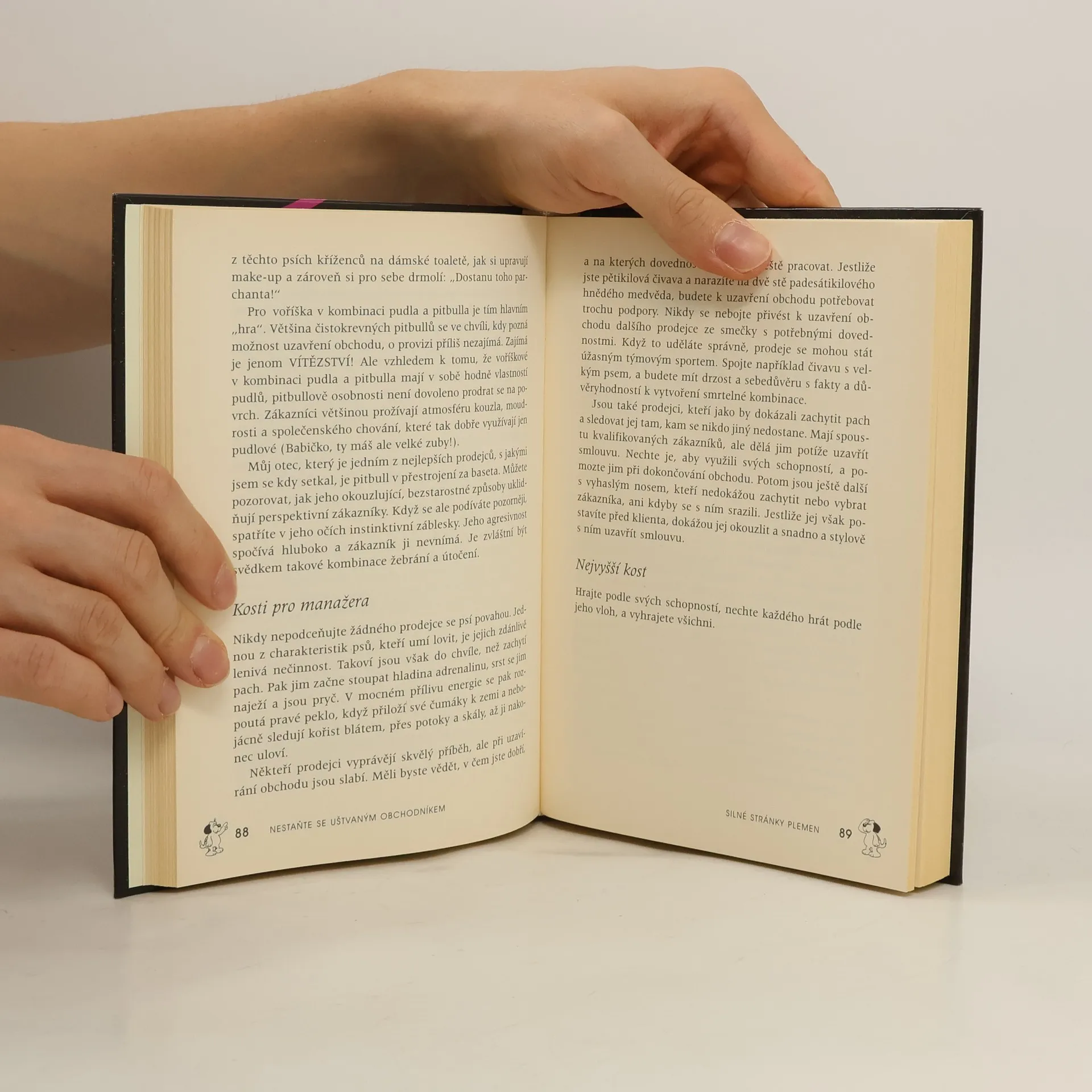 Kniha obchodního poradce Blaira Singera: - představuje pět typů prodejců a porovnává jejich vlasntosti s vlasnostmi psích plemen - prozrazuje pět jednoduchých dovedností potřebných k vytváření příjmů - učí vás poznat své "plemeno" a hrát podle vlastních schopností - poskytuje vám vhodné způsoby k inspirování skupiny a její výchově v útočící smečku prodejců obdařených psím instinktem lovce s modrou stuhou - ukazuje, jak lze snižovat prodejní úsilí a současně zvyšovat prodejní výsledky
