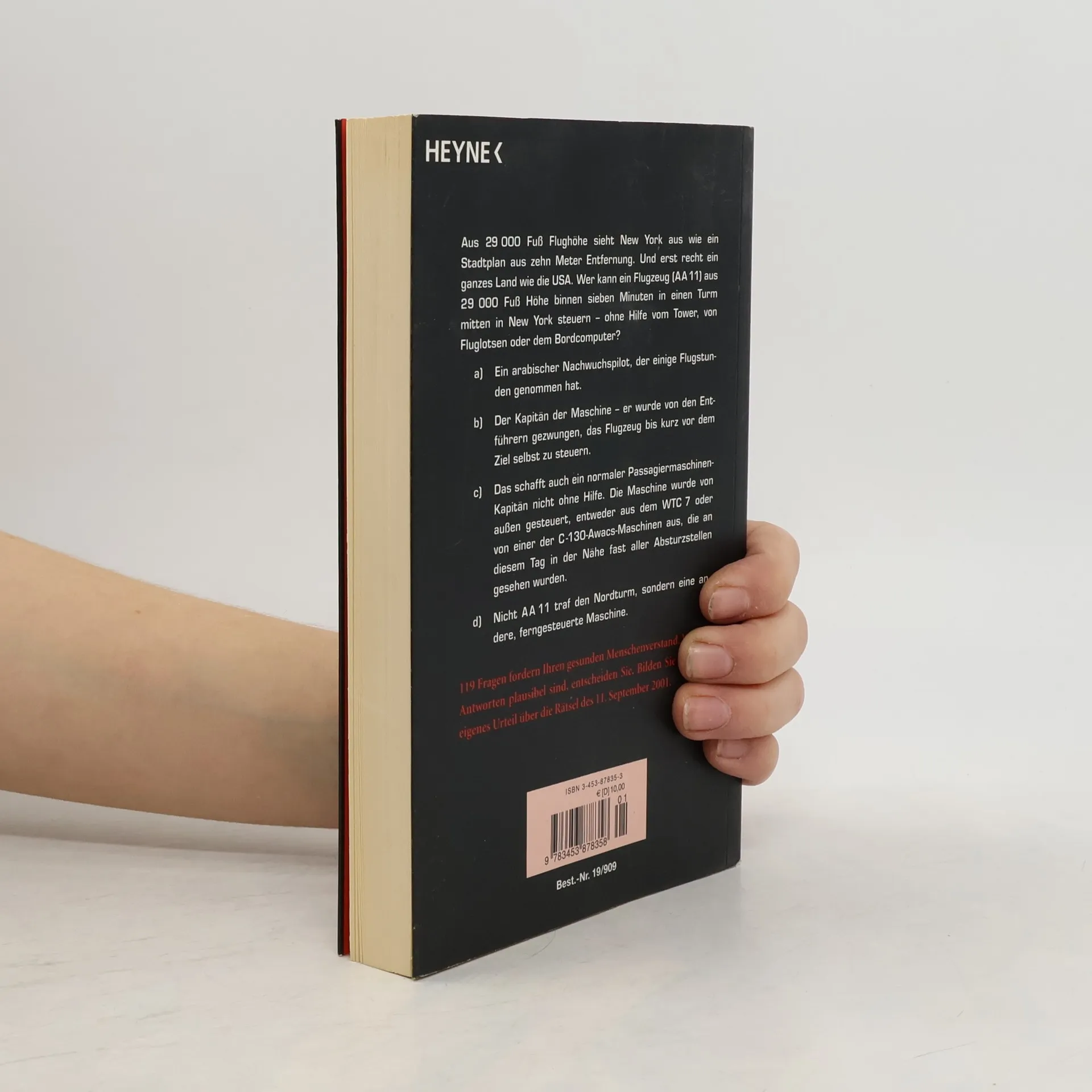 Christian C. Walther hat die Fülle des Materials neu gesichtet und bisher unbeachtete Quellen erschlossen. Auf der Basis neuester Erkenntnisse stellt er die existierenden Theorien auf die Probe und bietet dem Leser zu 119 Fragen jeweils vier mögliche Antworten an - auszuwählen mithilfe unserer schärfsten Waffe: dem gesunden Menschenverstand. Walther stellt 119 Fragen, die endlich Licht bringen in das Dunkel der sich widersprechenden Erklärungsmodelle. Ein akribisch recherchiertes, faszinierendes Buch über die Rätsel des 11. September 2001.