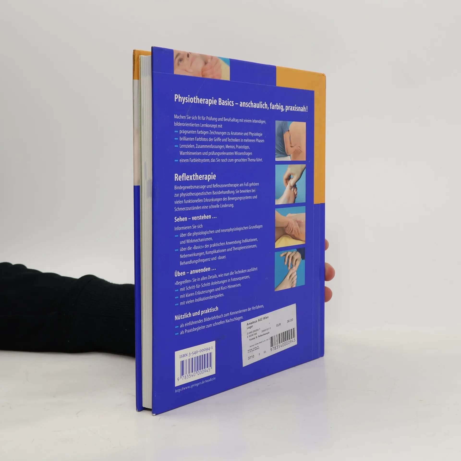 Reflextherapeutische Verfahren sind bei vielen funktionellen Erkrankungen des Bewegungssystems und Schmerzzuständen Teil der physiotherapeutischen Basisbehandlung, weil sie schnelle und effektive Linderung bringen.Um Bindegewebsmassage und Fußreflexzonenmassage geht es in diesen Bilderlehrbuch. Farbige Grafiken und Fotoserien erklären die physiologischen und neurophysiologischen Grundlagen und verdeutlichen Schritt für Schritt die Techniken.Die Praxisanleitung macht Lernende mit Wirkungsweisen, Indikationen, Nebenwirkungen, Komplikationen und Therapieresistenzen vertraut und gibt Anhaltspunkte für die Behandlungsfrequenz und -dauer.