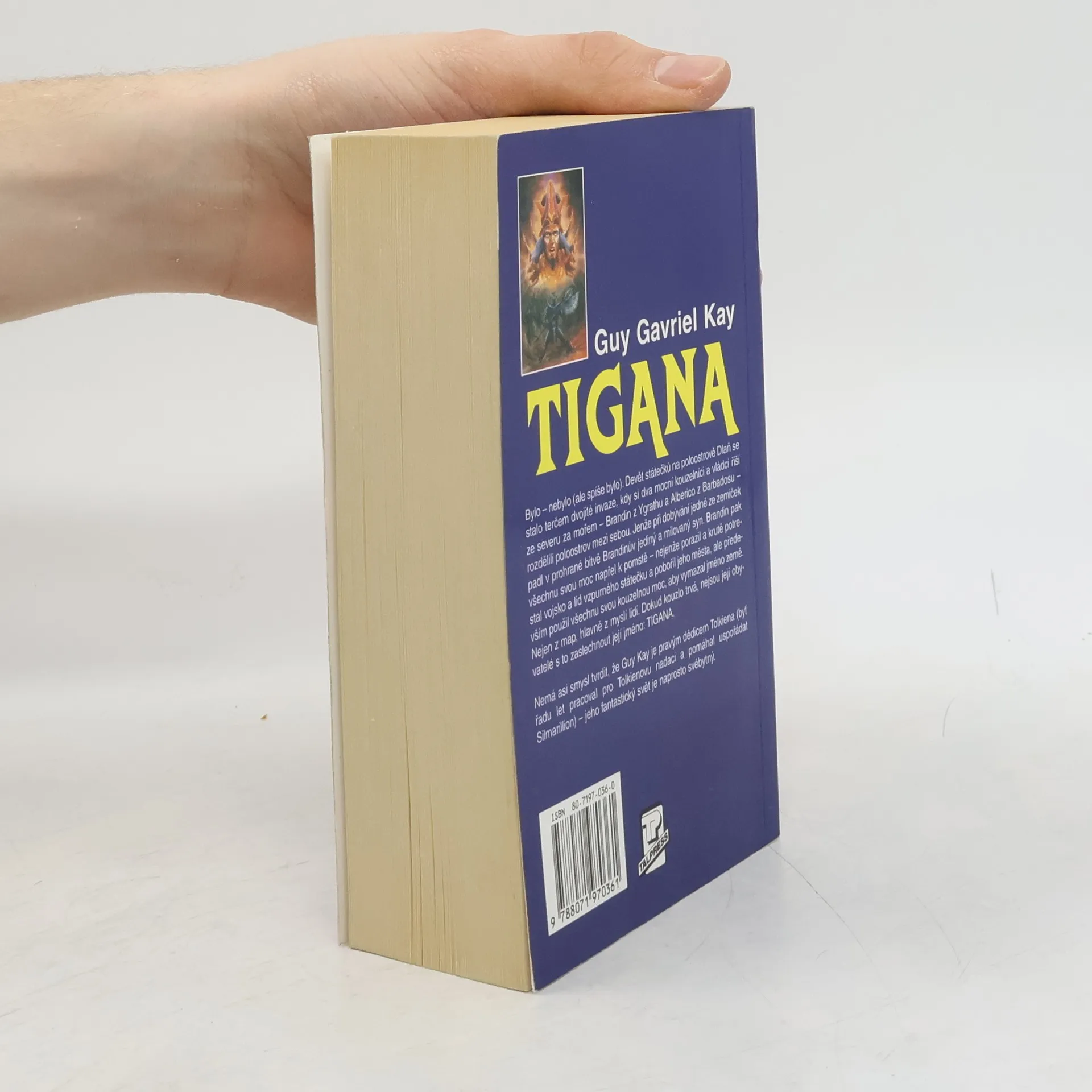 Bylo – nebylo (ale spíše bylo). Devět státečků na poloostrově Dlaň se stalo terčem dvojité invaze, kdy si dva mocní kouzelníci a vládci říší ze severu za mořem – Brandin z Ygrathu a Alberico z Barbadosu – rozdělili poloostrov mezi sebou. Jenže při dobývání jedné ze zemiček padl v prohrané bitvě Brandinův jediný a milovaný syn. Brandin pak všechnu svou moc napřel k pomstě – nejenže porazil a krutě potrestal vojsko a lid vzpurného státečku a pobořil jeho města, ale především použil všechnu svou kouzelnou moc, aby vymazal jméno země. Nejen z map, hlavně z myslí lidí. Dokud kouzlo trvá, nejsou její obyvatelé s to zaslechnout její jméno: Tigana. Přeložil Jiří Lexa.