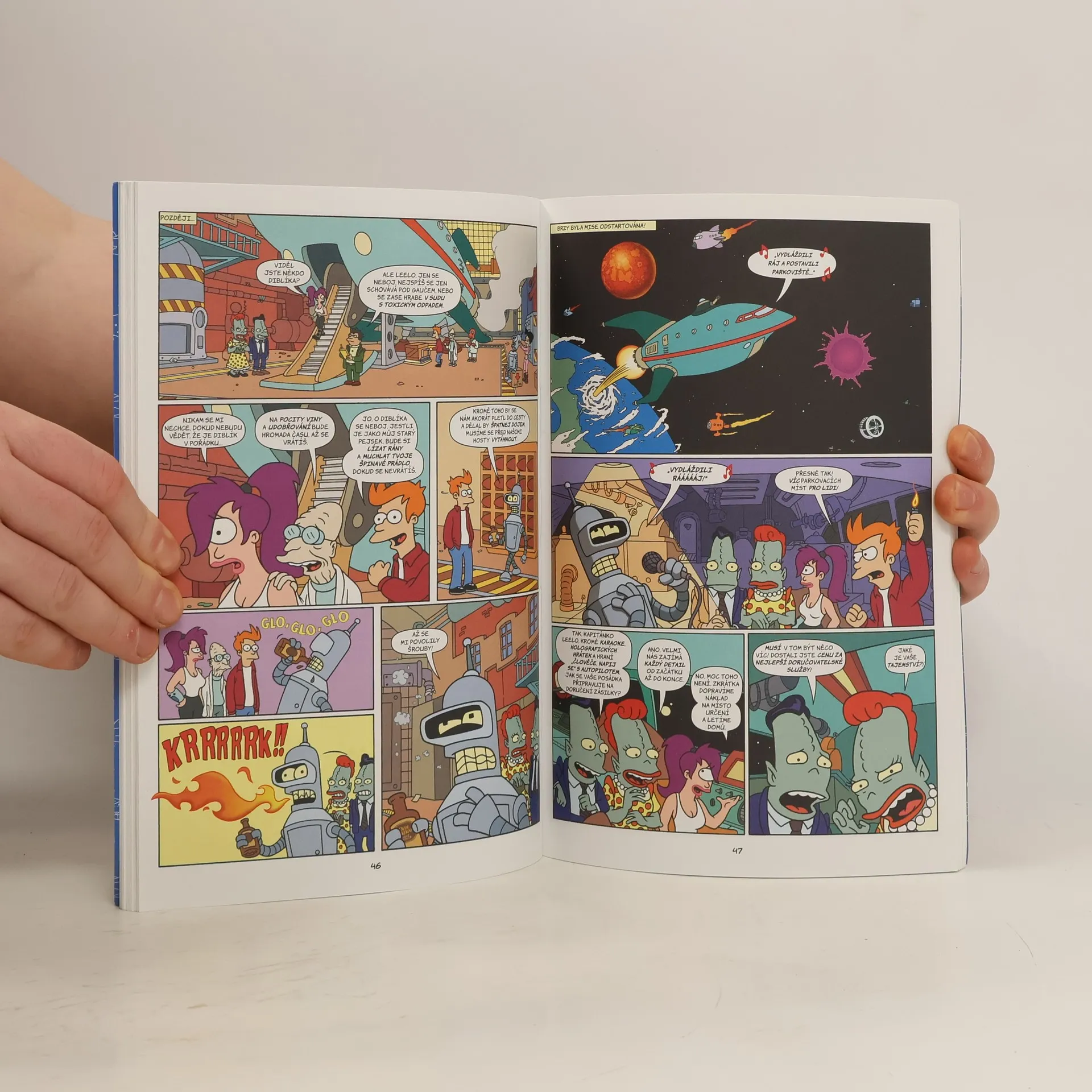 Nebaví vás všední realita? Milujete Matta Groeninga a jeho bláznivé kreslené postavičky? Tak právě pro vás je tu další ze série komiksů světoznámé Futuramy! Fry, Bender a Leela se vydávají na další a ještě úžasnější mise. Nechybí souboj s vesmírnými robopiráty a k našim známým hrdinům se tentokrát přidají i další oblíbené postavy - Leo a Inez Wongovi, nemravně bohatí majitelé Marsu a shodou okolností též rodiče Amy, která pracuje jako stážistka v Planet Expressu. Opět se setkáme i s proslulým sukničkářem kapitánem Zappem Branniganem a jeho nenápadným, ale o to zábavnějším druhem Kifem. V žádném případě nechybí šílené pokusy ovládnout svět, ještě šílenější a velmi nebezpečné mořské opičky z dávno minulého dvacátého století a komplikované vztahy Leely a kapitána Brannigana. A doktor Zoidberg.