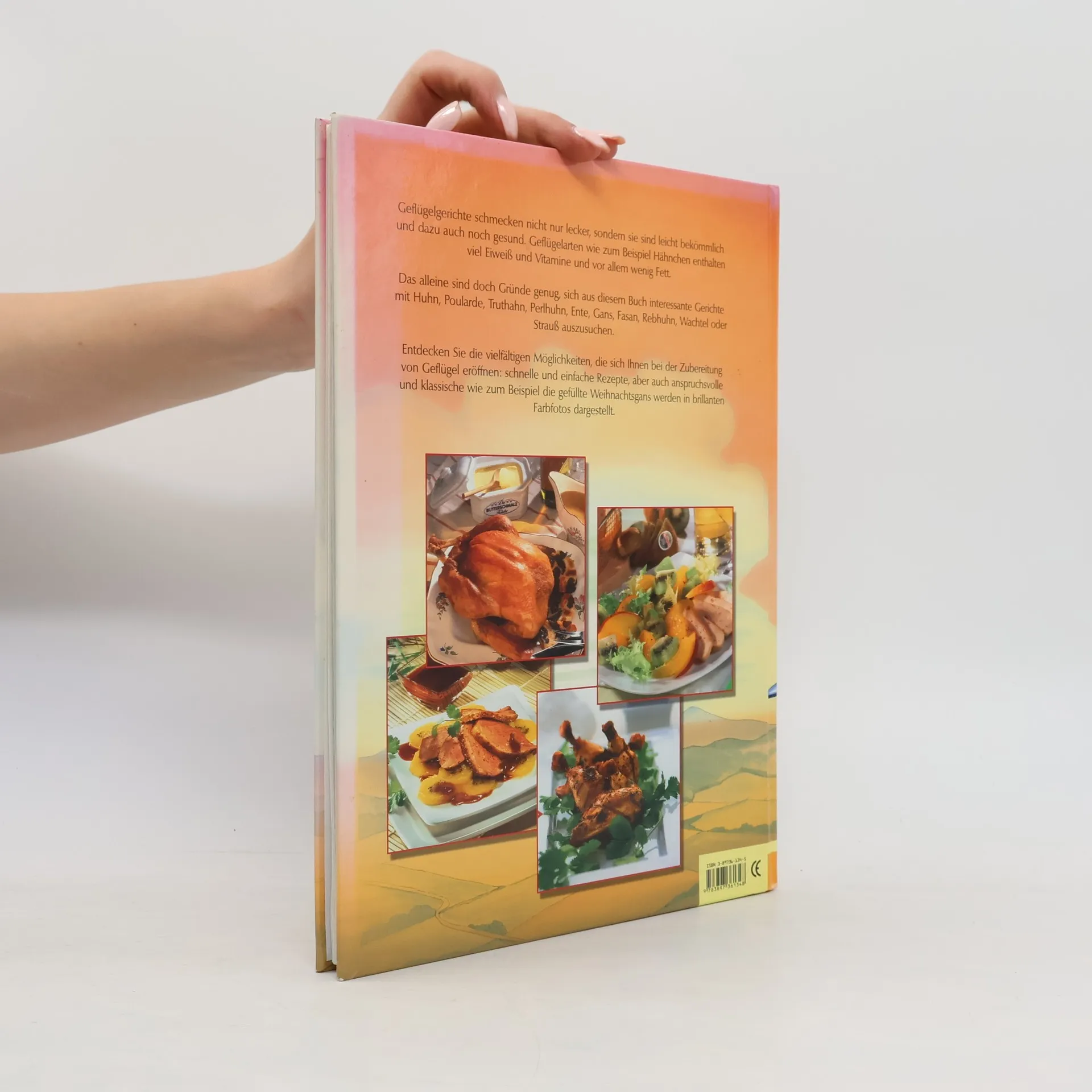 Geflügelgerichte schmecken nicht nur lecker, sondern sie sind leicht bekömmlich und dazu auch noch gesund. Das alleine sind doch Gründe genug, sich aus diesem Buch interessante Gerichte mit Huhn, Poularde, Truthahn, Perlhuhn, Ente, Gans, Fasan, Rebhuhn, Wachtel oder Strauß auszusuchen. Schnelle und einfache Rezepte, aber auch anspruchsvolle und klassische werden in brillanten Farbfotos dargestellt.
