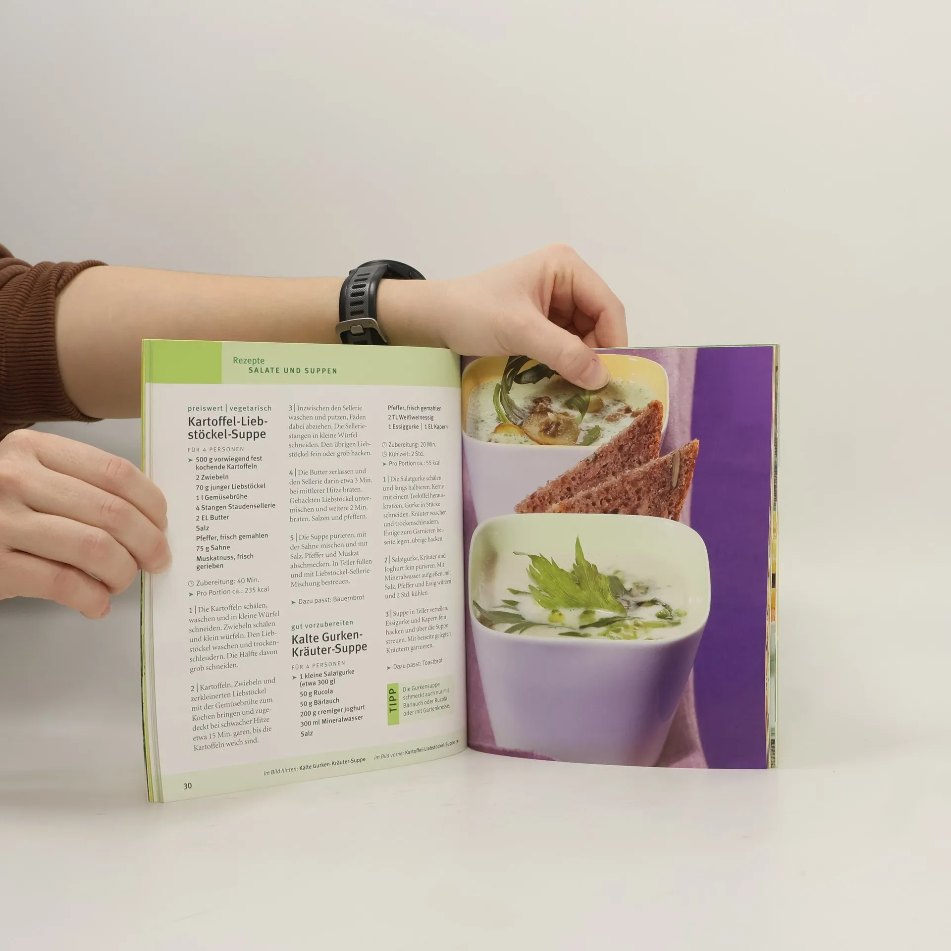 Frühlingskräuter gartenfrisch auf den Tisch. Ein ganzer Bund an vitaminstrozem Grün wird geboten: Über 50 Rezepte mit Rucola, Bärlauch, Kresse, Löwenzahn, Sauerampfer, Liebstöckel, Borretsch und Brennesseln. Wer will zupft die Kräuter selbst oder besorgt sich die Zutaten für Gerichte wie Rucolasalat mit Honighuhn, Kräuterquiche oder Bärlauchnockerl einfach auf dem Markt.