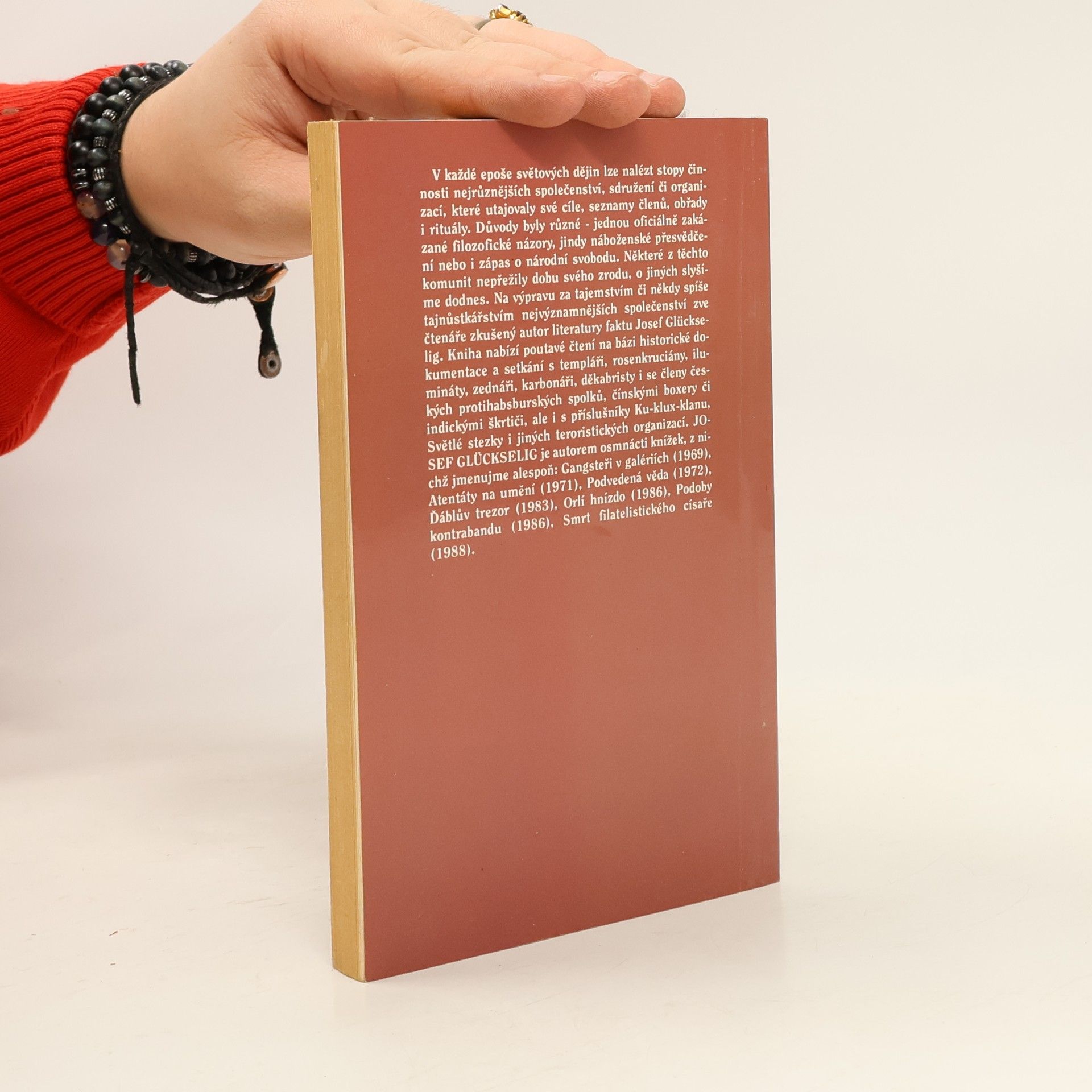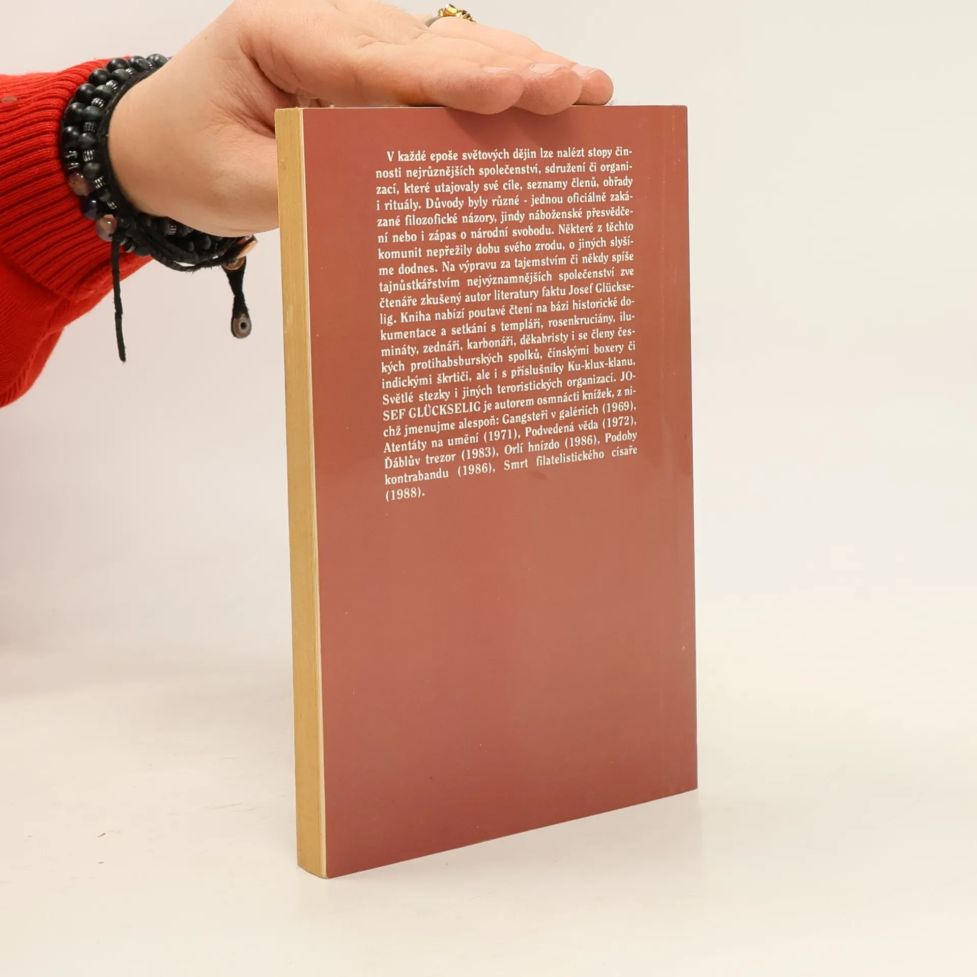 Kniha nabízí poutavé čtení na bázi historické dokumentace a setkání s templáři, rosenkruciány, ilumináty, zednáři, karbonáři, děkabristy i se členy českých protihabsburských spolků, čínskými boxery či indickými škrtiči, ale i příslušníky Ku-KLux-klanu, Světlé stezky i jiných teroristických organizací.