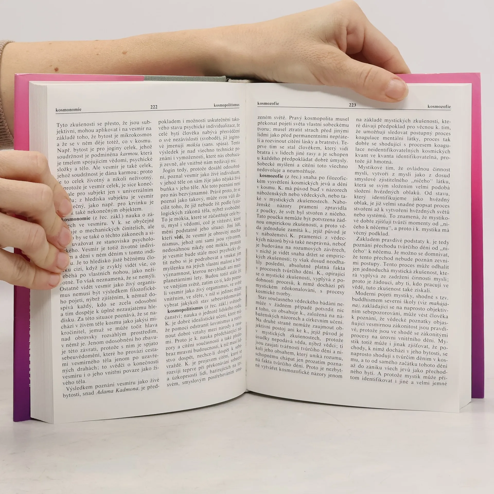 Vysvětluje základní pojmy duchovních nauk a jejich vztahy k ostatním vědám. Tematický záběr 1800 hesel je nesmírně široký: styčné body mezi psychologií, fyziologií, neurologií, fyzikou a mystickou praxí; křesťanství, buddhismus a další orientální náboženské i filozofické směry, tibetská mystika a různé evropské filozofie; astrologie. Základní pojmy jógické praxe různých jóg, postupy jejich realizace a problémy, na něž narážejí lidé, snažící se žít podle duchovních mravních zásad, a ještě mnohé jiné. To vše vysvětleno ze zorného úhlu mistra mystiky, praktika, který všechny návody sám vyzkoušel. Pro snazší orientaci je na konci slovníku uveden seznam všech hesel. Vydání první