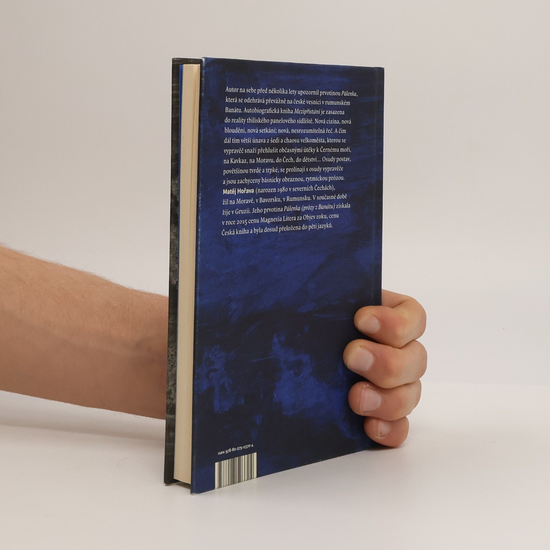 Podmanivé prózy z Gruzie. Autobiografická kniha Mezipřistání je zasazena do reality tbiliského panelového sídliště. Nová cizina, nová bloudění, nová setkání; nová, nesrozumitelná řeč. A čím dál větší únava z šedi a chaosu velkoměsta, kterou se vypravěč snaží přehlušit občasnými útěky k Černému moři, na Kavkaz, na Moravu, do Čech, do dětství... Šedé, rozpadající se panelákové sídliště na periferii gruzínského hlavního města Tbilisi. Osamělý vypravěč, který po večerech vyučuje češtinu na univerzitě. V dalším ze svých dobrovolných exilů, v dalším nesrozumitelném světě. Utíká do hor, k moři; do jiných cizin, do vzpomínek. A čím dál tím častěji i na místa, kde kdysi žil a odkud uprchl: na Moravu, do Čech. Při svém bloudění potkává lidi, v jejichž osudech — ač na první pohled zcela odlišných — se zrcadlí jeho vlastní nejistoty, traumata, velké tužby a drobné radosti. Za svůj debut Pálenka získal Matěj Hořava před několika lety Magnesii Literu v kategorii Objev roku. Prózy z Banátu tehdy uhranuly čtenáře, kteří od literatury očekávají víc než jen oddych. Pálenka je jednou z těch vzácných knih, o nichž se říká, že mají duši. Tato duše se nyní přerodila do Mezipřistání. Poetický Banát nahradila Gruzie plná kontrastů, širokodechý Dunaj se vlil do Černého moře, ale vypravěčovo vidění světa a schopnost zachytit střídu dní zůstaly nezměněny; naopak jako by se ještě zpřesnily. Mezipřistání představuje knihu, jaká se neobjevuje každý rok.
