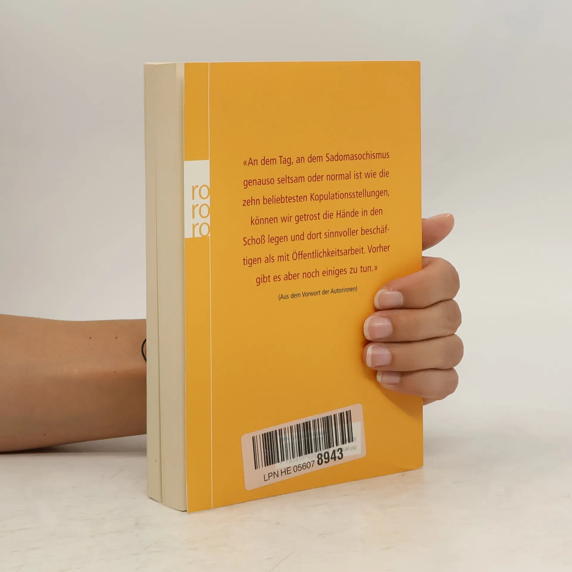 «An dem Tag, an dem Sadomasochismus genauso seltsam oder normal ist wie die zehn beliebtesten Kopulationsstellungen, können wir getrost die Hände in den Schoß legen und dort sinnvoller beschäftigen als mit Öffentlichkeitsarbeit. Vorher gibt es aber noch einiges zu tun.»(Aus dem Vorwort der Autorinnen)