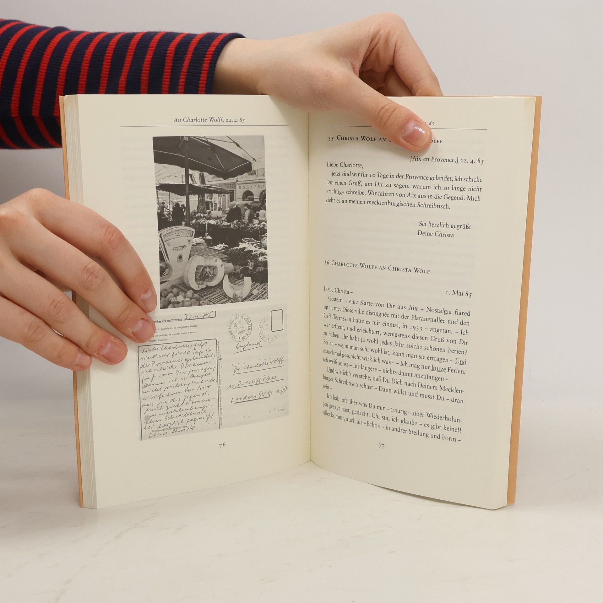 „Sie werden verstehen, daß ich Ihnen schreiben muß“ - Christa Wolf beginnt den Briefwechsel mit Charlotte Wolff, nachdem sie in Wolffs Autobiographie auf ihren eigenen Namen stößt. Charlotte Wolff, ebenfalls Schriftstellerin, entdeckt in Christa Wolfs „Kein Ort. Nirgends“ ein poetisches Bild, das sie ähnlich in einem ihrer Gedichte verwendet hat. Sie beschreibt in ihrer Autobiographie, dass es ein Wunder sei, dass zwei Geister solch ähnliche poetische Ausdrücke schaffen konnten. Der Austausch thematisiert oft solche „Wunder“, Koinzidenzen und Begegnungen, die die Rationalität herausfordern. In der Zeit des Briefwechsels wurde Christa Wolfs „Kassandra“ veröffentlicht, in der sie die selbstzerstörerischen Tendenzen der abendländischen Zivilisation und deren patriarchale Wurzeln untersucht. Häufig geht es jedoch um Persönliches: Charlotte Wolff fragt sich, ob sie nach einem langen Leben im Exil Heimat finden kann, und reflektiert über die Herausforderungen neuer Projekte. Während des Austauschs arbeitet Christa Wolf an „Sommerstück“, während Charlotte Wolff an ihrer Biographie über Magnus Hirschfeld, den Pionier der Sexualforschung, schreibt. Diese Biographie wird ihr letztes Werk sein, da sie im September 1986 stirbt. Ihr beider Wunsch, sich zu begegnen, bleibt unerfüllt.