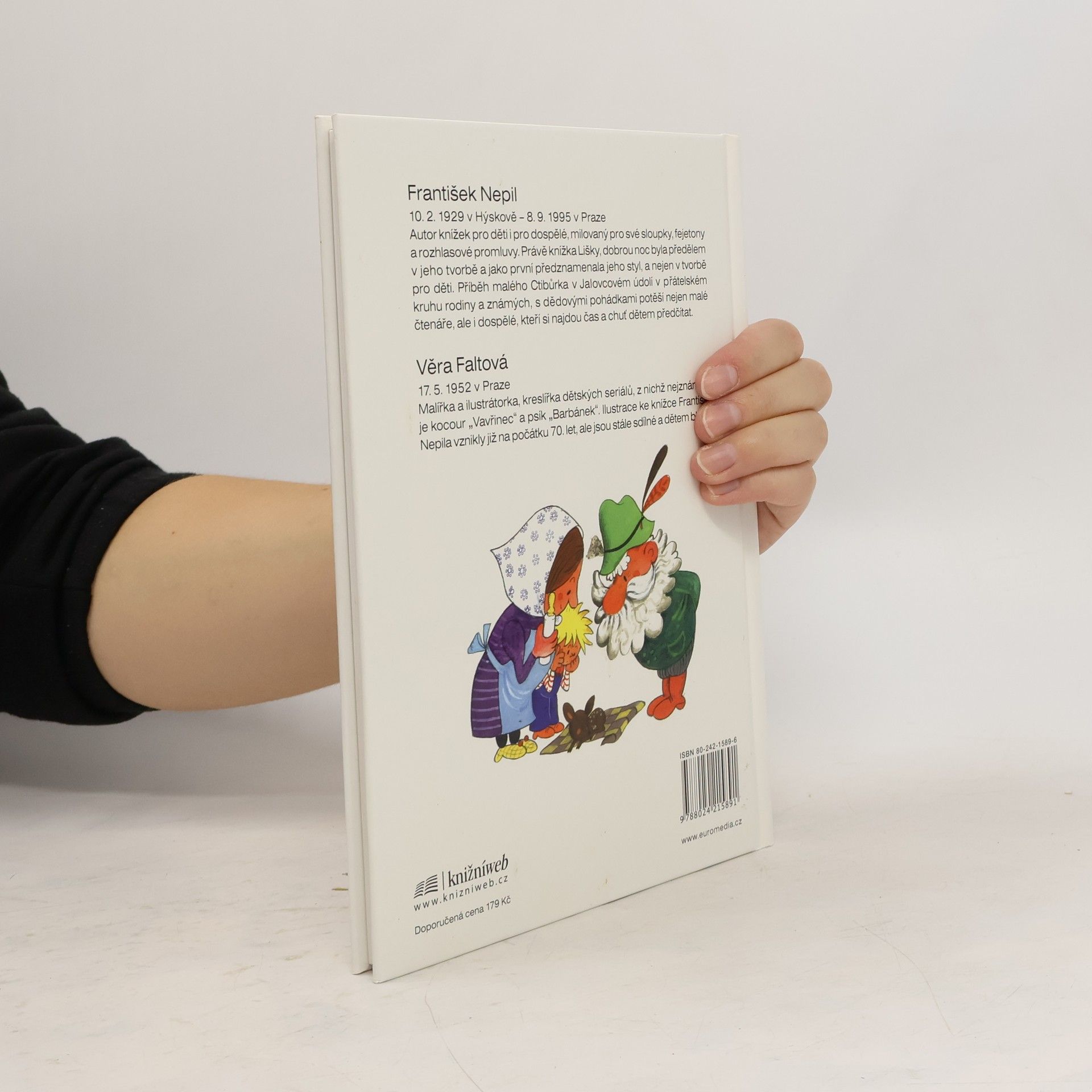František Nepil patří k nejoblíbenějším českým autorům a vypravěčům. Podstatnou část své tvorby věnoval dětem. Příběh Lišky, dobrou noc je situován do kouzelného Jalovcového údolí, kde malý Ctibůrek objevuje tajemství přírody a prožívá v přátelském kruhu rodiny první klukovská dobrodružství. Nejkrásnější chvíle tráví ve společnosti dědy a jeho veselých pohádek. Kniha s barevnými ilustracemi Věry Faltové je určena dětem od šesti let, ale jistě potěší i starší čtenáře. Jednoduchý, přístupný text je vhodný k předčítání i k nácviku samostatného čtení.