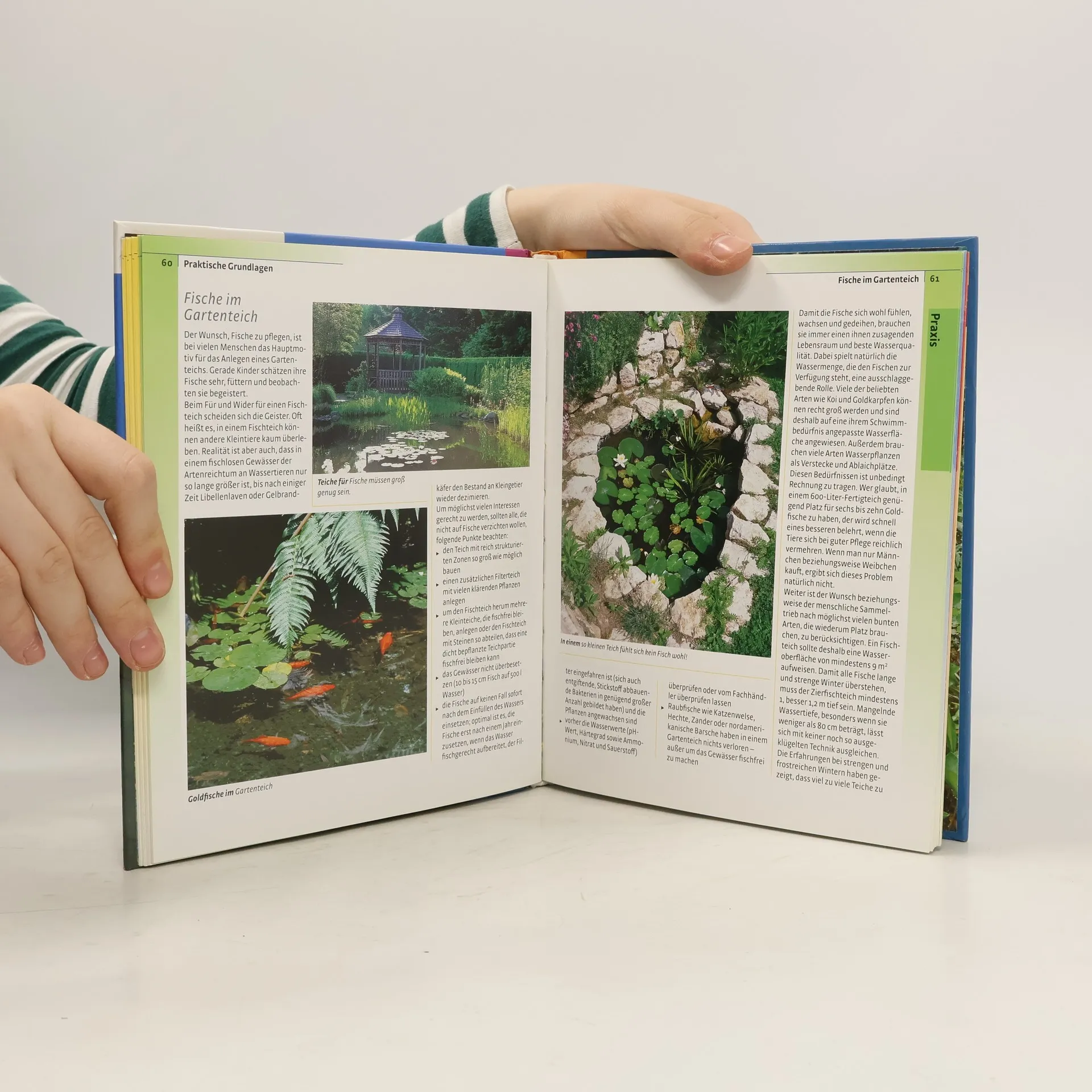 Vorgestellt werden naturnahe Teichvarianten (Eigenbau, Folien-, Fertig- und Moorteich, Teiche im Hochbau und am Hang, Miniwassergärten etc.), deren Technik, Bepflanzung, Pflege, Standort u.a.; reich illustriert.