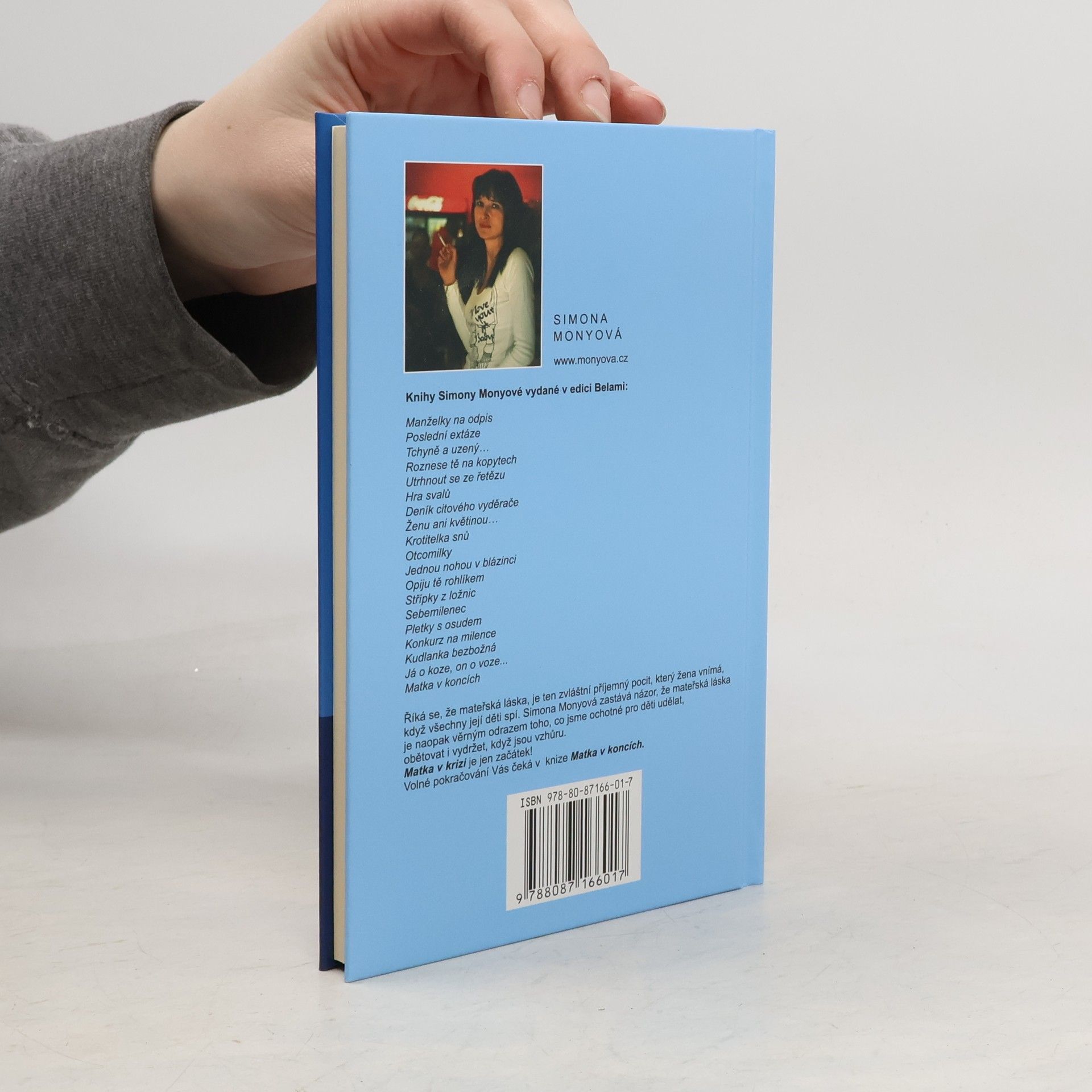 Říká se, že mateřská láska, je ten zvláštní příjemný pocit, který žena vnímá, když všechny její děti spí. Simona Monyová zastává názor, že mateřská láska je naopak věrným odrazem toho, co jsme ochotné pro děti udělat, obětovat i vydržet, když jsou vzhůru. Matka v krizi je jen začátek! Volné pokračování Vás čeká v připravované knize Matka v koncích.
