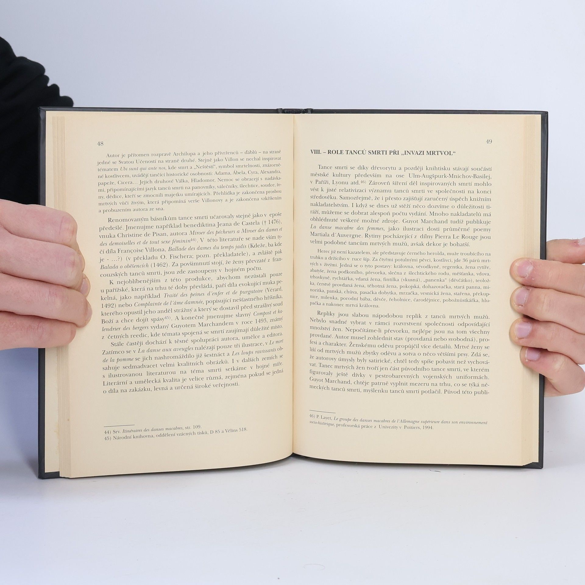 Studie o postavení tématu smrti v literatuře, výtvarném umění i v životě lidí. Francouzský profesor ze Sorbonny zkoumá zpracování tématu smrti prostřednictvím tzv. tanců smrti. Tance smrti popisují či zobrazují tanec, případně dialog smrti nebo mrtvých s živými. Strnulí živí jsou vyzýváni mrtvými do kola. Tance smrti se zachovaly v Evropě v podobě literárních textů, poem, ilustrací, rytin, fresek a dalších literárních či výtvarných ztvárnění. Jejich zrod v západní Evropě je spjat se šířením morové epidemie v roce 1348 a jsou de facto považovány za kuriozitu pozdního středověku, která však vývojově přetrvala - jak autor knihy dokazuje - až do novověku, i když v novém pojetí. Smrt od antiky až do moderního věku přirozeně provázela život člověka (až dnes ji chápeme odděleně), její umělecké ztvárnění nám poskytuje cenné informace o obrazu společnosti dané historické epochy