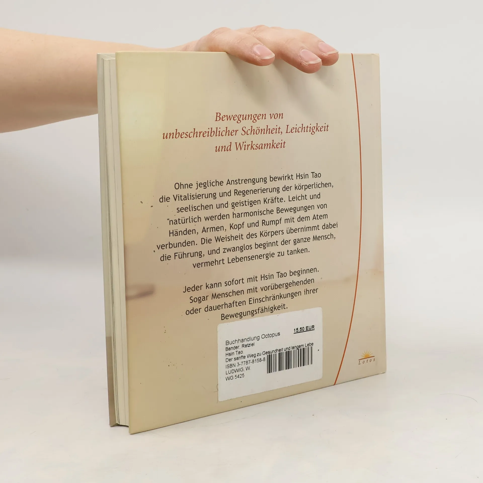 Bewegungen von unbeschreiblicher Schönheit, Leichtigkeit und Wirksamkeit Ratziel Bander hatte eine schwere Polio-Erkrankung durchgemacht, und nun wuchs ein Tumor in seiner Lunge. Er konnte weder laufen noch schmerzfrei sitzen oder liegen, selbst kleinste Bewegungen wurden schwerer und schwerer. Doch ein chinesischer Tai-Chi-Meister machte ihm ein unerwartetes Angebot: 'Ich kenne eine geheime Technik, mit der du dich selbst heilen kannst. Sie heilt fast alles. Ich denke, es ist an der Zeit, sie mit der Welt zu teilen.' Ratziel Bander nahm das Angebot an. Hsin Tao hatte eine unbeschreibliche Schönheit und Weisheit. Hand- und Armbewegungen wurden leicht und natürlich mit dem Atem verbunden. Der Körper schien von sich aus auf ganz neue, sehr tiefe Weise zu atmen. Es gab keine Verrenkungen, komplizierte Bewegungen oder irgendeine Art von Anstrengung. Und doch, nach den Übungen fühlte er sich gestärkt und entspannt zugleich. In nur zwei Tagen verbesserte sich sein körperlicher und emotionaler Zustand erheblich. Doch das war erst der Anfang.