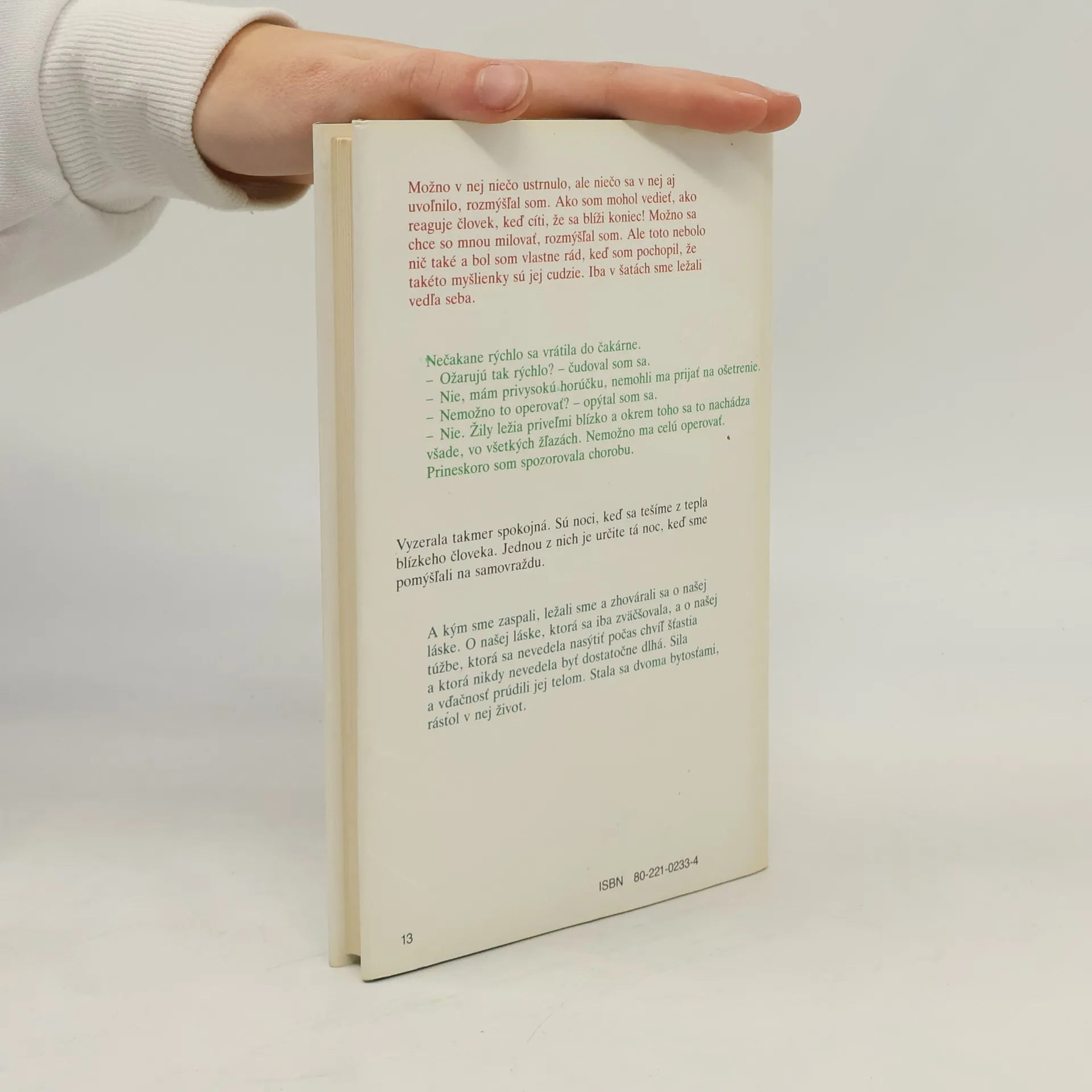 Román ,je akási literárna reportáž ,správa o krátkom romániku lásky a manželstva, no najmä o smrteľnej, na pohľad nevyliečiteľnej chorobe.