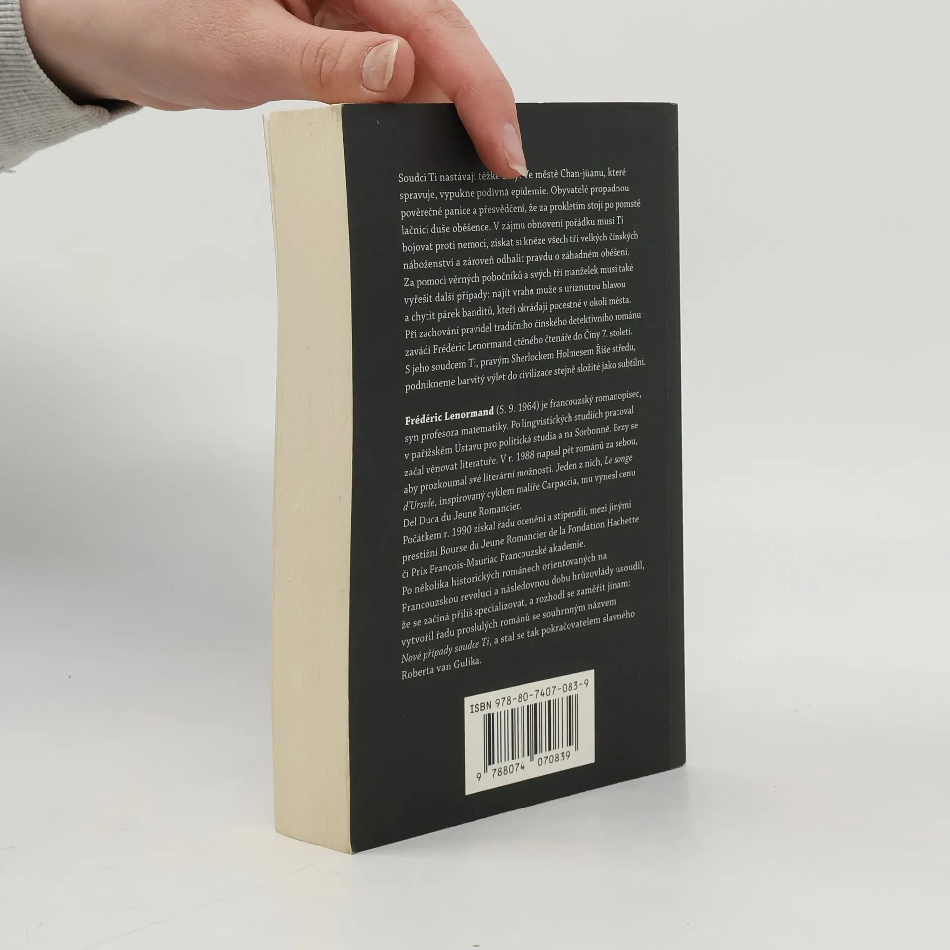 Soudci Ti nastávají těžké časy! Ve městě Chan-jüanu, které spravuje, vypukne podivná epidemie. Obyvatelé propadnou pověrečné panice a přesvědčení, že za prokletím stojí po pomstě lačnící duše oběšence. V zájmu obnovení pořádku musí Ti bojovat proti nemoci, získat si kněze všech tří velkých čínských náboženství a zároveň odhalit pravdu o záhadném oběšení. Za pomoci věrných pobočníků a svých tří manželek musí také vyřešit další případy: najít vraha muže s uříznutou hlavou a chytit párek banditů, kteří okrádají pocestné v okolí města. Při zachování pravidel tradičního čínského detektivního románu zavádí Frédéric Lenormand ctěného čtenáře do Číny 7. století. S jeho soudcem Ti, pravým Sherlockem Holmesem Říše středu, podnikneme barvitý výlet do civilizace stejně složité jako subtilní.