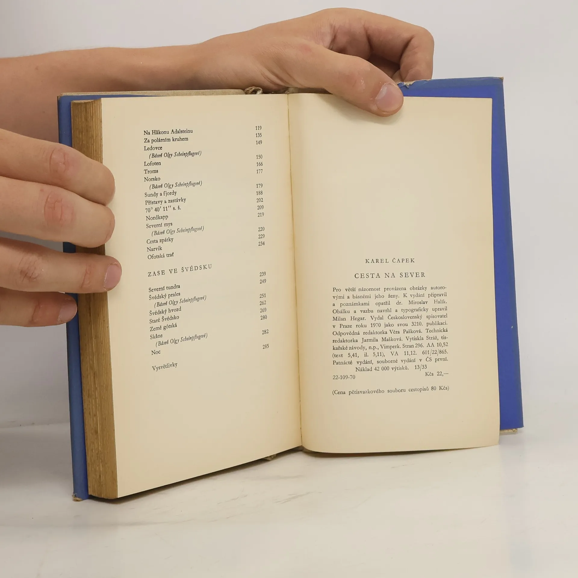 • Pro větší názornost provázená obrázky autorovými a básněmi jeho ženy. V půvabných cestopisných záznamech z Dánska, Norska a Švédska kreslí autor severskou přírodu s tundrami, fjordy, ledovci, jezery, pralesy, život Seveřanů na usedlostech, ve městech a do tohoto líčení vkládá své osobité, často humorné postřehy a kulturní vědomosti. Obálka a vazba: Milan Hegar K vydání připravil a pozn. opatřil Miroslav Halík. 15. vydání 42000 výt.