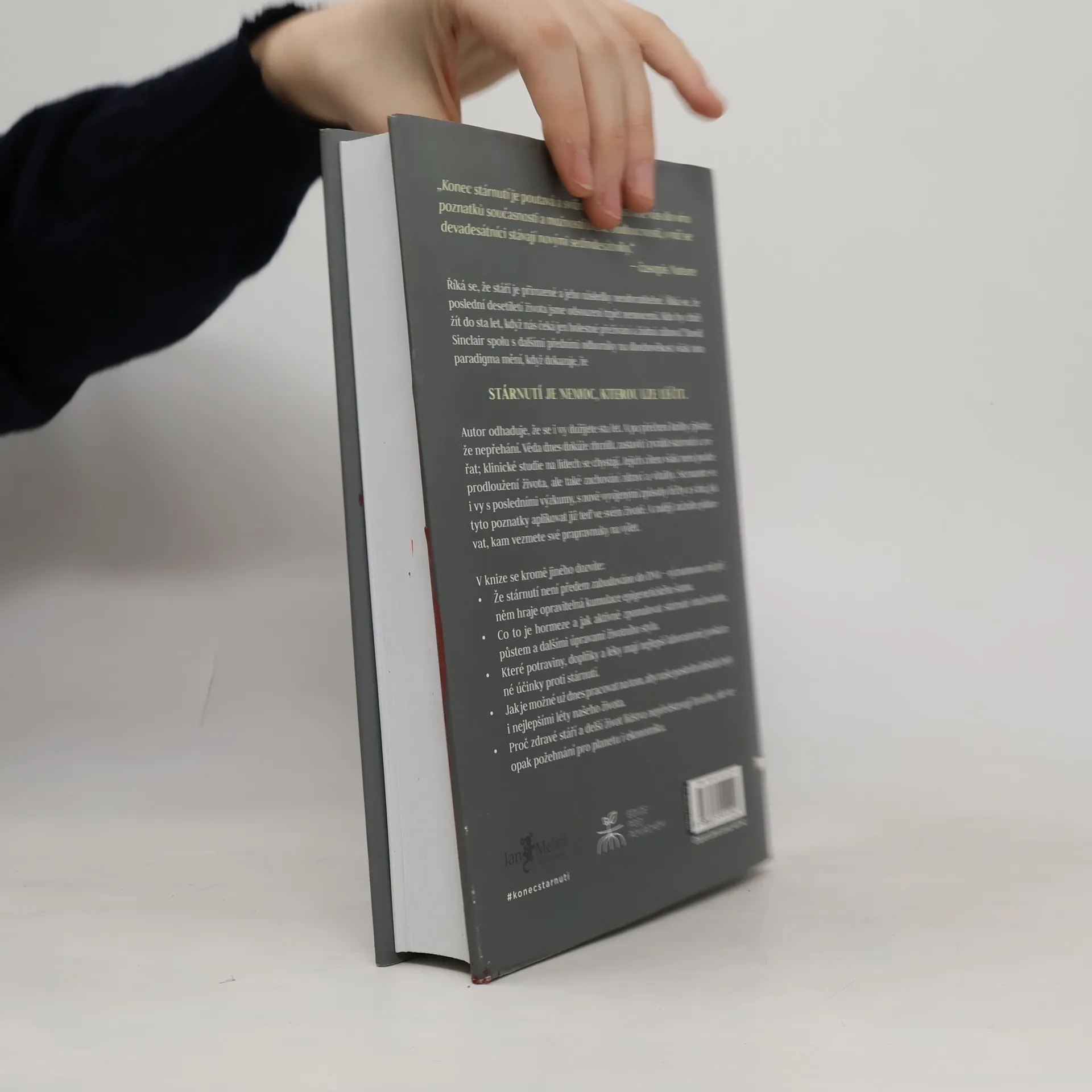 Říká se, že stáří je přirozené a jeho následky neodvratitelné. Říká se, že poslední desetiletí života jsme odsouzeni trpět nemocemi. Kdo by chtěl žít do sta let, když nás čeká jen bolestné přežívání a žádná zábava? David Sinclair spolu s dalšími předními odborníky na dlouhověkost však toto paradigma mění, když dokazuje, že STÁRNUTÍ JE NEMOC, KTEROU LZE LÉČIT. Autor odhaduje, že se i vy dožijete sta let. A po přečtení knihy zjistíte, že nepřehání. Věda dnes dokáže zbrzdit zastavit i zvrátit stárnutí zvířat, klinické studie na lidech se chystají. Jejich cílem však není pouhé prodloužení života, ale také zachování zdraví a vitality. Seznamte se i vy s posledními výzkumy, s nově vyvíjenými způsoby léčby a s tím, jak tyto poznatky aplikovat již teď ve svém životě. A raději začněte plánovat, kam vezmete své prapravnuky na výlet. V knize se mimo jiné dozvíte - Že stárnutí není předem zabudováno do DNA – významnou roli při něm hraje opravitelná kumulace epigenetického šumu. - Co je to hormeze a jak aktivně zpomalovat stárnutí otužováním, půstem a dalšími úpravami životního stylu. - Které potraviny, doplňky a léky mají nejlepší laboratorně prokázané účinky proti stárnutí. - Jak je možné už dnes pracovat na tom, aby naše poslední dekády byly i nejlepšími léty našeho života. - Proč zdravé stáří a delší život lidstva nepředstavují hrozbu, ale naopak požehnání pro planetu i ekonomiku.
