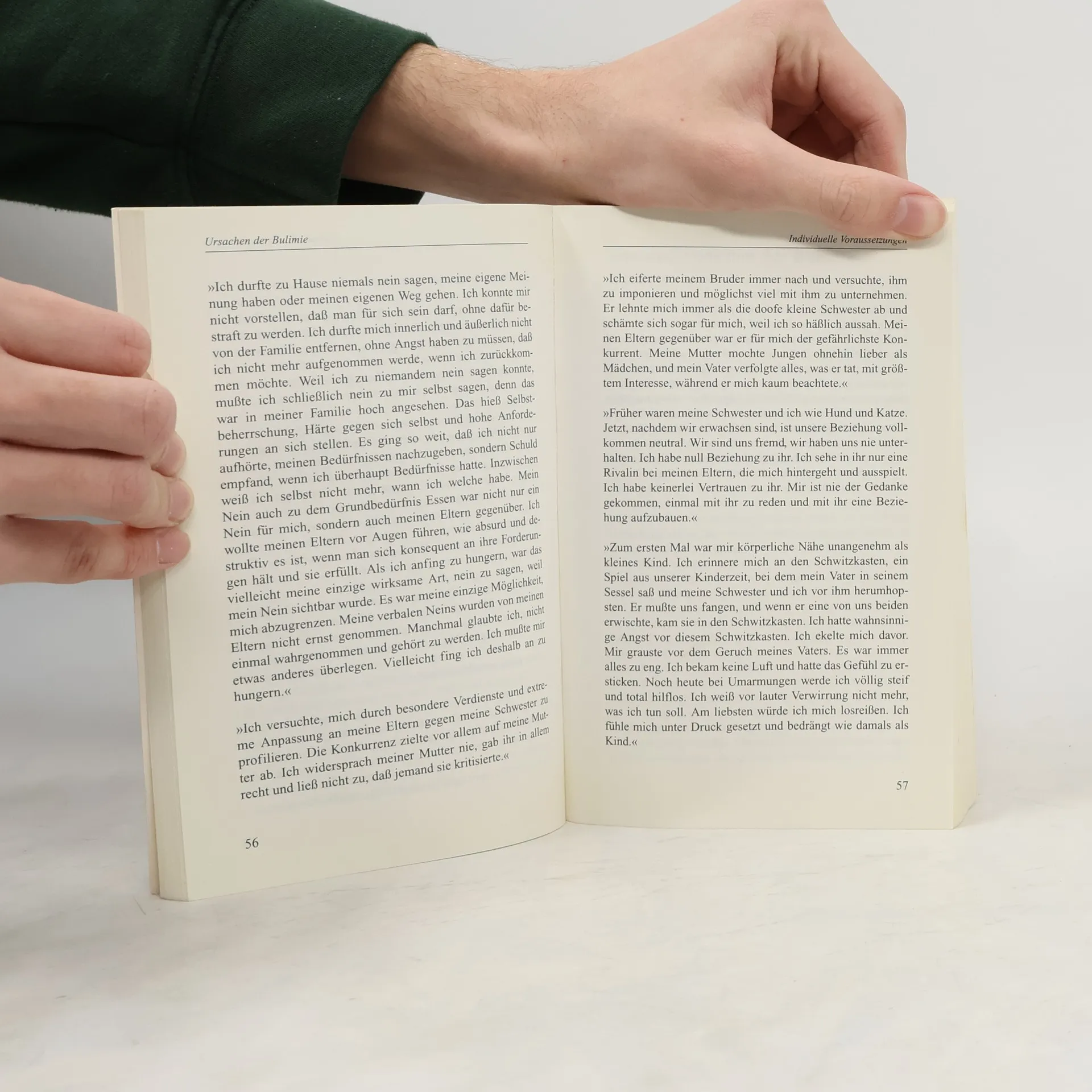 Bulimie ist eine populäre Krankheit. An ihr leiden überwiegend junge, meist attraktive und dynamische Frauen. Sie verbergen ihr von heimlichen Heißhungerattacken bestimmtes Leben hinter einer perfekten äußeren Erscheinung, bedroht von wachsender Einsamkeit, aber auch von gesundheitlichen Gefahren. Motive und Hintergründe der Krankheit herauszufinden, ist Voraussetzung für die dauerhafte Bewältigung dieser Eßstörung. Die Autoren stellen das am Münchner Therapie-Centrum für Eßstörungen entwickelte Therapiemodell vor und lassen dabei zahlreiche Betroffene zu Wort kommen.