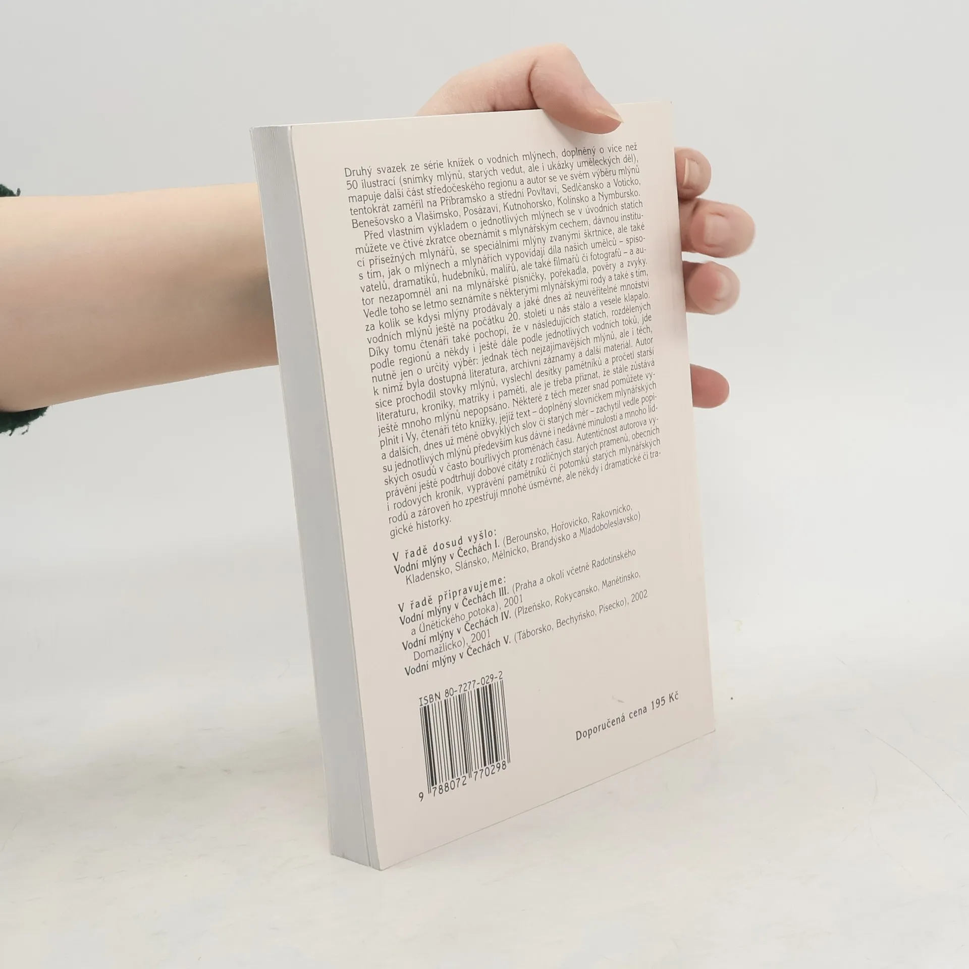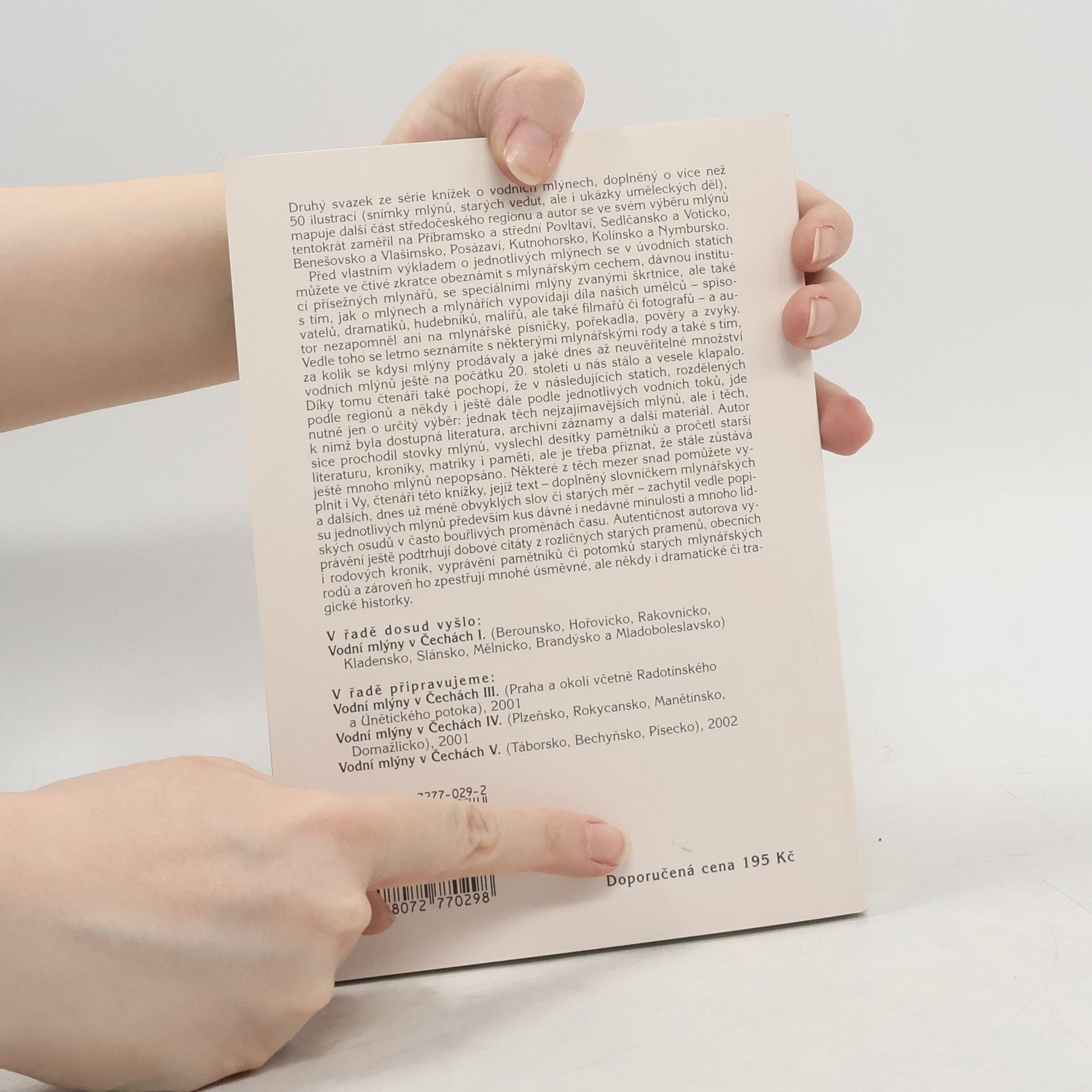 Druhý svazek přehledu vodních mlýnů pokrývá další část středních Čech: oblasti Příbramsko a střední Povltaví, Sedlčansko a Voticko, Benešovsko a Vlašimsko, Posázaví, Kutnohorsko, Kolínsko a Nymbursko. Vlastní popis mlýnů po jednotlivých oblastech předchází úvodní část, pojednávající tentokrát o mlynářském cechu, přísežných mlynářích, mlýnech-škrtnicích a o zobrazení mlýnů v uměleckých dílech umělců a v lidové slovesnosti.