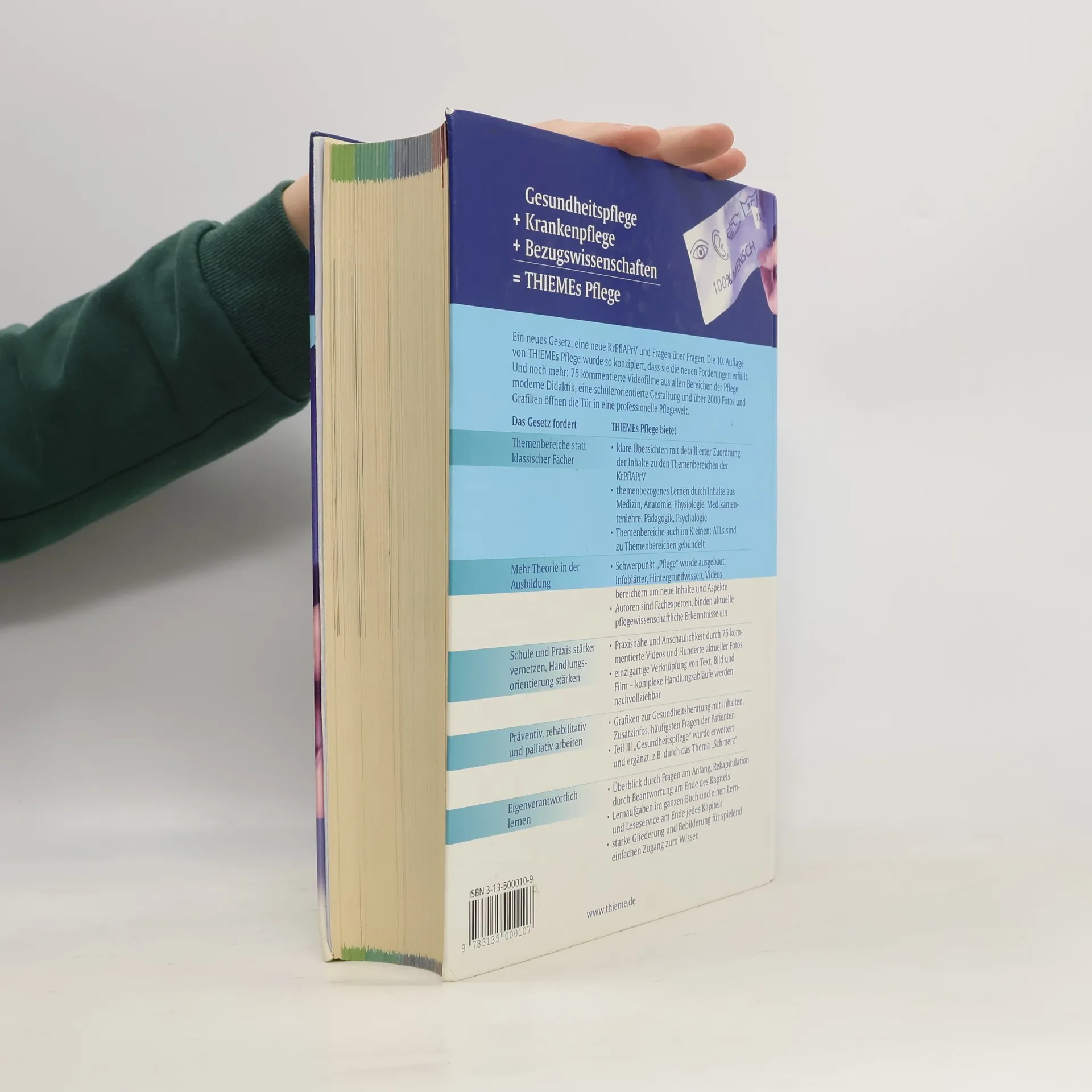 Das didaktische Konzept stellt den Menschen in den Mittelpunkt und präsentiert aktuelles pflegerisches Wissen verständlich und wissenschaftlich fundiert. Es ist hervorragend an die neue Ausbildungs- und Prüfungsordnung angepasst. Die Kapitel- und Überschriftenstruktur ermöglicht effektives Lesen und Lernen. Fragen zu Beginn und Antworten am Ende der Kapitel fördern das selbstständige Lernen. Vielfältige Lernelemente unterstützen sowohl den Unterricht als auch das Eigenstudium und zeigen Pflege in der Praxis. Themen wie Kinaesthetik, Prophylaxen und verschiedene Techniken werden praxisnah in kurzen Filmen erklärt. Der verständliche Text wird durch über 2000 eindrucksvolle Fotos und Grafiken unterstützt. Eine detaillierte Übersicht ordnet alle Inhalte den Themenbereichen der Ausbildungs- und Prüfungsordnung zu. Die starke Vernetzung von Schule und Praxis wird durch die einzigartige Verknüpfung von Text, Bild und Film erreicht. Eigenverantwortliches Lernen wird durch die Strukturierung der Inhalte in "Lernhäppchen" erleichtert. Es erfordert keine Installation auf der Festplatte und benötigt keine zusätzlichen Videoabspielprogramme.