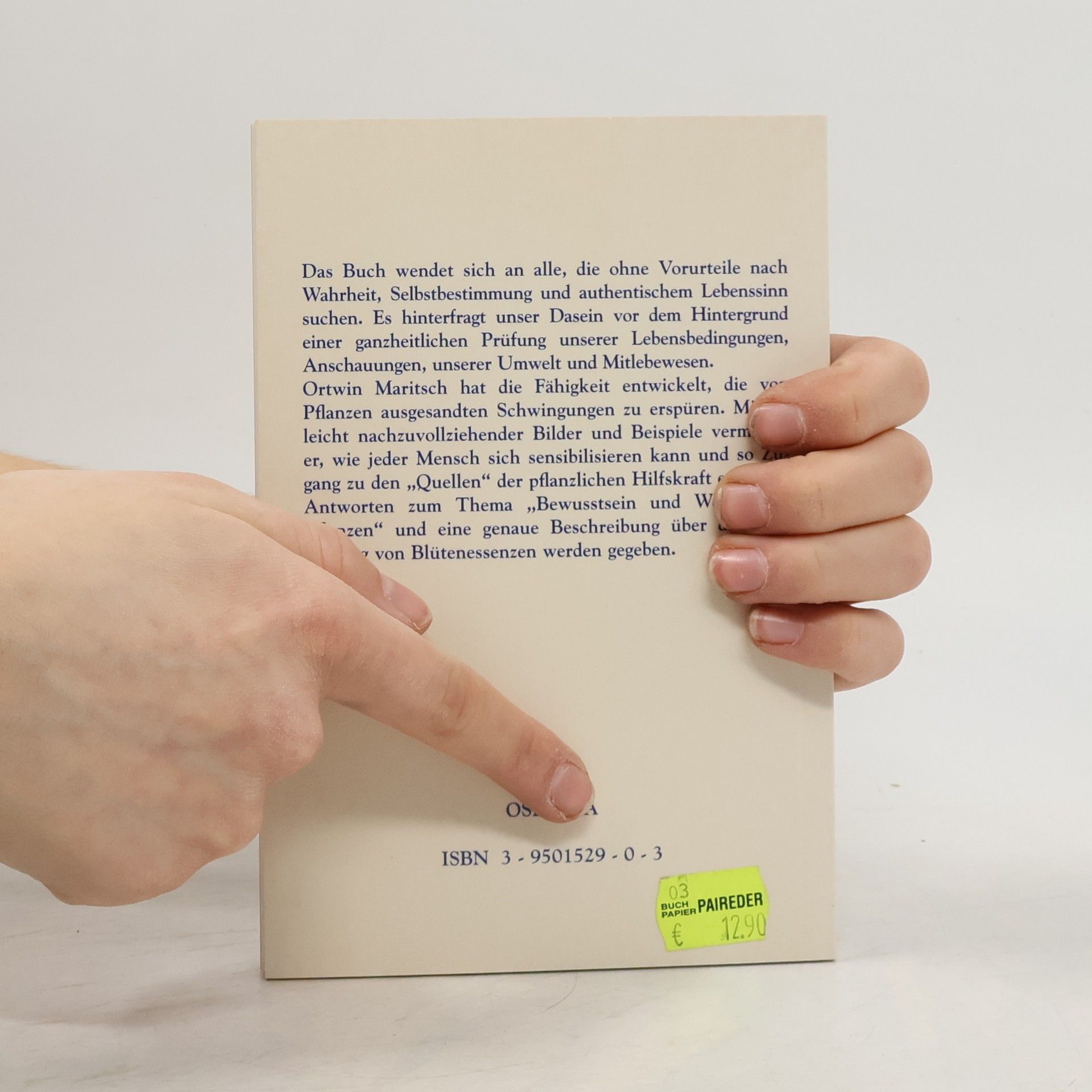 Ortwin Maritsch hat die Fähigkeit entwickelt, die Ausstrahlungen von Pflanzen zu erspüren. Das Buch wendet sich an alle, die ohne Vorurteile nach Wahrheit suchen. In leicht nachzuvollziehenden Bildern beschreibt der Autor, wie sich jeder Mensch für die Wahrnehmung der Schwingungen von Pflanzen sensibilisieren kann. Antworten über den Sinn des eigenen Lebens, sowie eine genaue Beschreibung über die Herstellung von Blütenessenzen und über das Bewusstsein von Pflanzen werden gegeben.