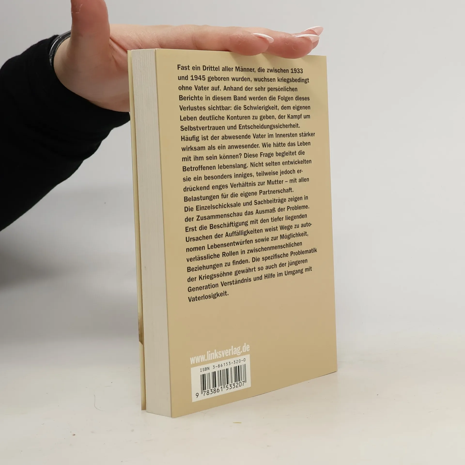 Der Verlust des Vaters ist ein brutaler Einschnitt, der einen Sohn lebenslang begleitet - und oft auch beschädigt, selbst wenn er es nicht bewußt wahrnimmt. Das Nicht-fragen-können führt viele zu Selbsttäuschung und mitunter auch zu Selbstquälerei. Das Selbstvertrauen steht nicht selten auf wackligem Grund. Kernstück dieses Buches bilden die Lebensberichte von Männern, die zwischen 1933 und 1945 geboren wurden und vaterlos aufwuchsen. Auch wenn sich Vaterbilder und spätere Lebenskonzepte der zurückgebliebenen Söhne unterscheiden: Das Gemeinsame ist die oft uneingestandene lebenslange Trauer, die meist erst spät einsetzende Wahrnehmung von fehlendem Halt und dem ständigen Zwang, die erahnten Defizite zu überwinden. Nicht selten machten die Söhne in Gehorsam zum (fehlenden) Vater oder zur (überforderten, tapferen) Mutter Karriere, engagierten sich sozial oder politisch und unterdrückten ihre Suche nach der eigenen Identität zu Gunsten eines Idealbildes. Die Autoren untersuchen die lebenslange Bedeutung der abwesenden Väter und zeigen Wege, wie Männer mit der Hypothek der Vaterlosigkeit konstruktiv umgehen können.