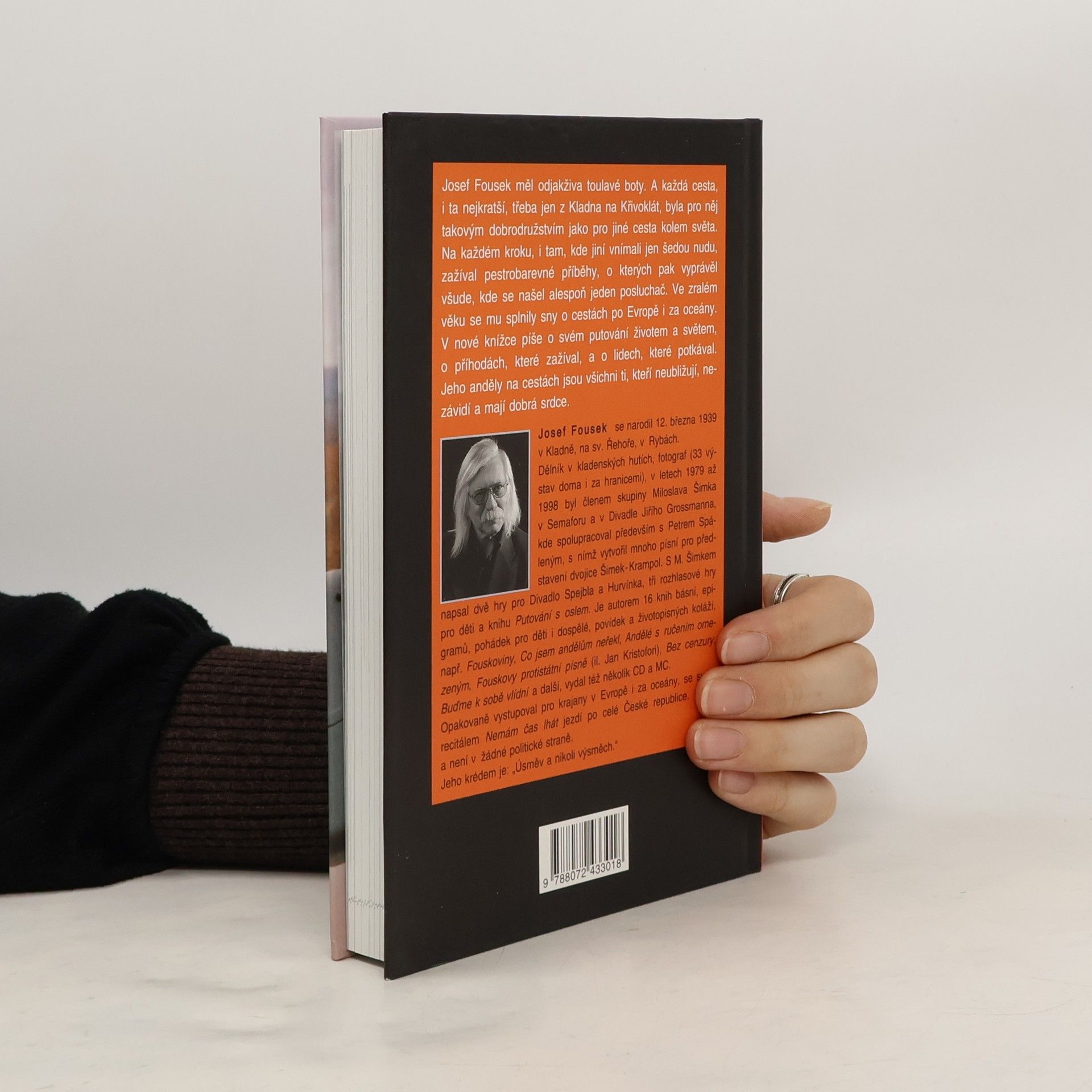 Josef Fousek měl odjakživa toulavé boty. A každá cesta, i ta nejkratší, třeba jen z Kladna na Křivoklát, byla pro něj takovým dobrodružstvím jako pro jiné cesta kolem světa. Na každém kroku, i tam, kde jiní vnímali jen šedou nudu, zažíval pestrobarevné příběhy, o kterých pak vyprávěl všude, kde se našel alespoň jeden posluchač. Ve zralém věku se mu splnily sny o cestách po Evropě i za oceány. V nové knížce píše o svém putování životem a světem, o příhodách, které zažíval, a o lidech, které potkával. Jeho anděly na cestách jsou všichni ti, kteří neubližují, nezávidí a mají dobrá srdce.
